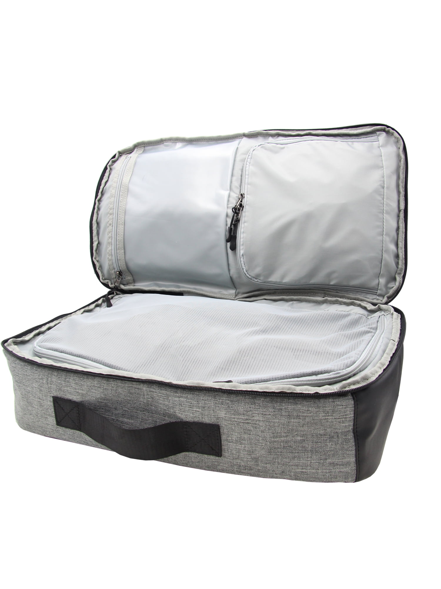 large main compartment built-in packing cube a clear toiletry pocket separate zippered pocket convertible-on-the-go