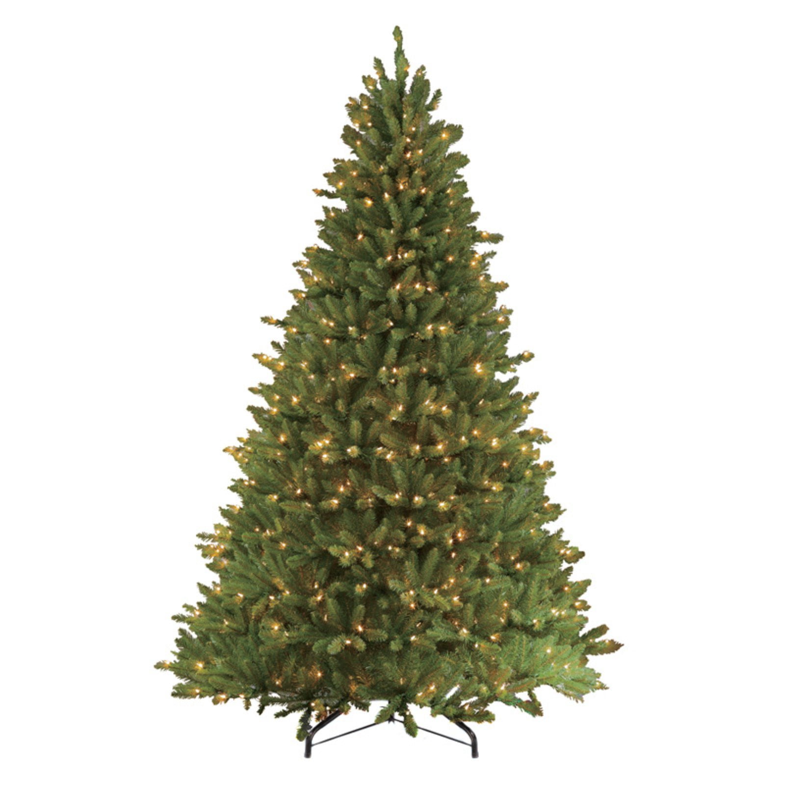 Choose from available sizes Fraser fir design 1,775-2591 tips Pre-lit with 500-700 clear lights Hinged branches for simple assembly Flame retardant Hypoallergenic Metal stand included