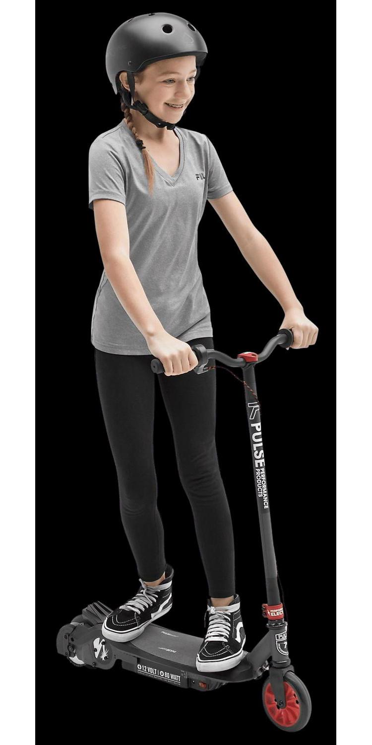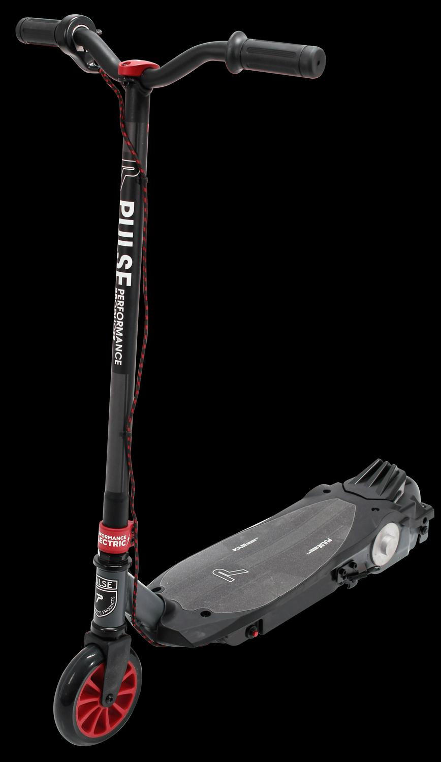 The Revster electric scooter delivers fun the instant you start riding! Perfect for kids stepping up from a kick scooter or those new to riding. Our Push-To-Go technology provides a smooth start and the extra grip deck adds stability. The Revster electric scooter gives the rider up to 45 minutes of continuous riding on a single charge. The maintenance-free wheels are puncture-proof, and the durable chain drive system transfers power efficiently for speeds up to 8 MPH. An integrated rear foot break has a motor power shut off that ensures quick and safe stopping, even if the thumb throttle is still pressed. You get 80 Watts of power, a 12-Volt rechargeable battery, and long-lasting vibrant graphics. Pulse Performance Products has been dedicated to scooter innovation since 2007. Beginning with the invention of the Kick N Go performance scooter, our creative minds have continued to push the envelope and develop unique and exciting products such as the Slither Drift Scooter and a complete line of electric scooters for all age ranges. [PARAGRAPH RETURN] Each model offers a mix of style and technical development to ensure a safe, fun ride. All Pulse Performance scooters are eligible for complete customer service support and available replacement parts direct from the manufacturer. Pulse Performance Products takes pride in designing, testing, and delivering the most epic scooters on the planet because that’s what we do best.