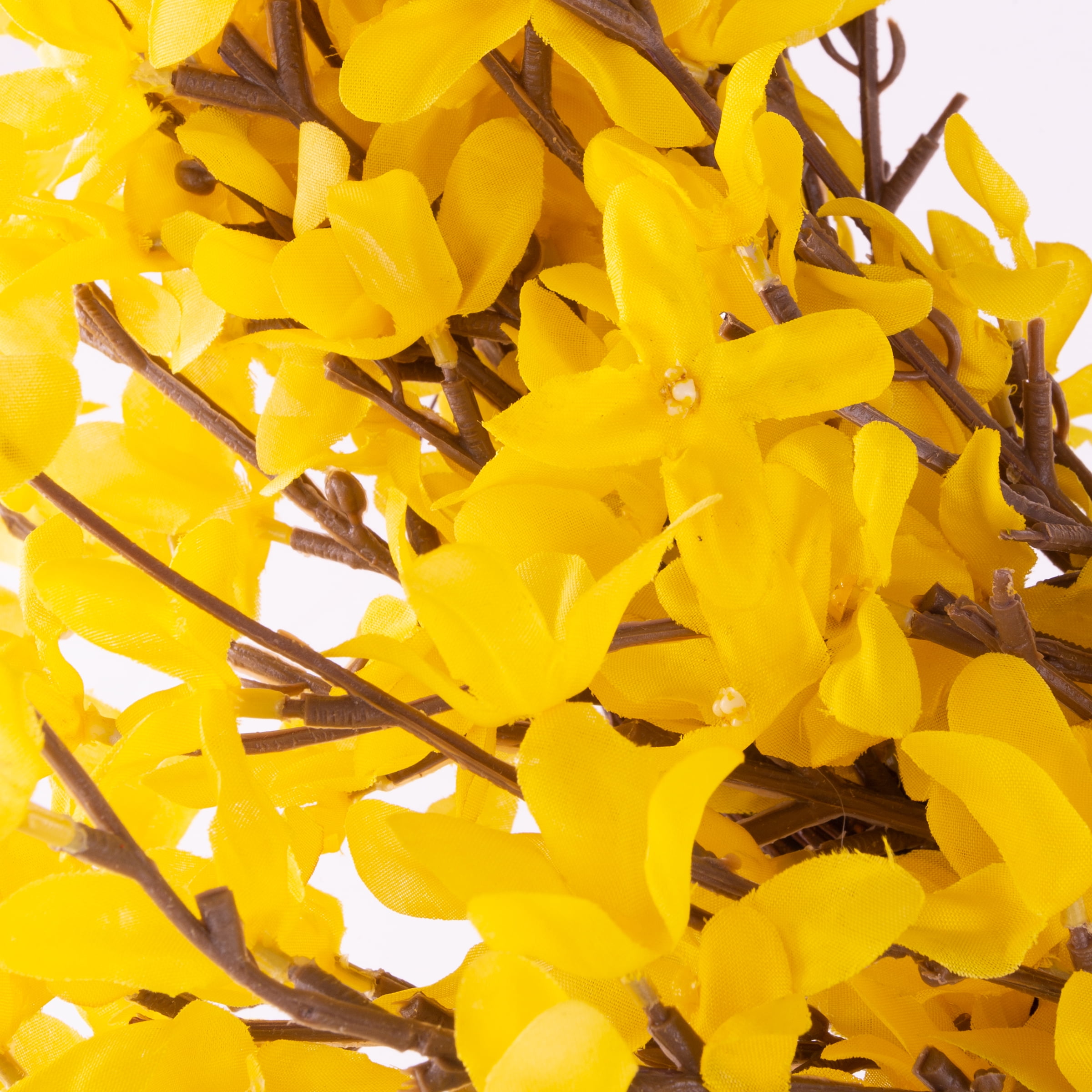 FORSYTHIA YELLOW WREATH – This all-season door wreath is made of artificial bright yellow forsythia flowers, accented with brown durable twigs that cover the base. MUTLIFUNCTIONAL DESIGN – The summer wreath can be used indoors or under a covered patio or porch for a colorful decorative piece all year round. EASY TO HANG – The flower wreath is lightweight and easy to hang on any door or wall – simply put in a nail or removable hook and use this wreath as a floral accent in a large wall grouping. GREAT GIFT – This twig wreath with vivid colored flowers is great as a housewarming, wedding, shower, birthday, or thank you gift that will make for a timeless seasonal patio décor. MATERIALS – Plastic. DIMENSIONS – (L) 24” x (W) 4″ x (H) 24”. COLOR – Yellow and Brown.