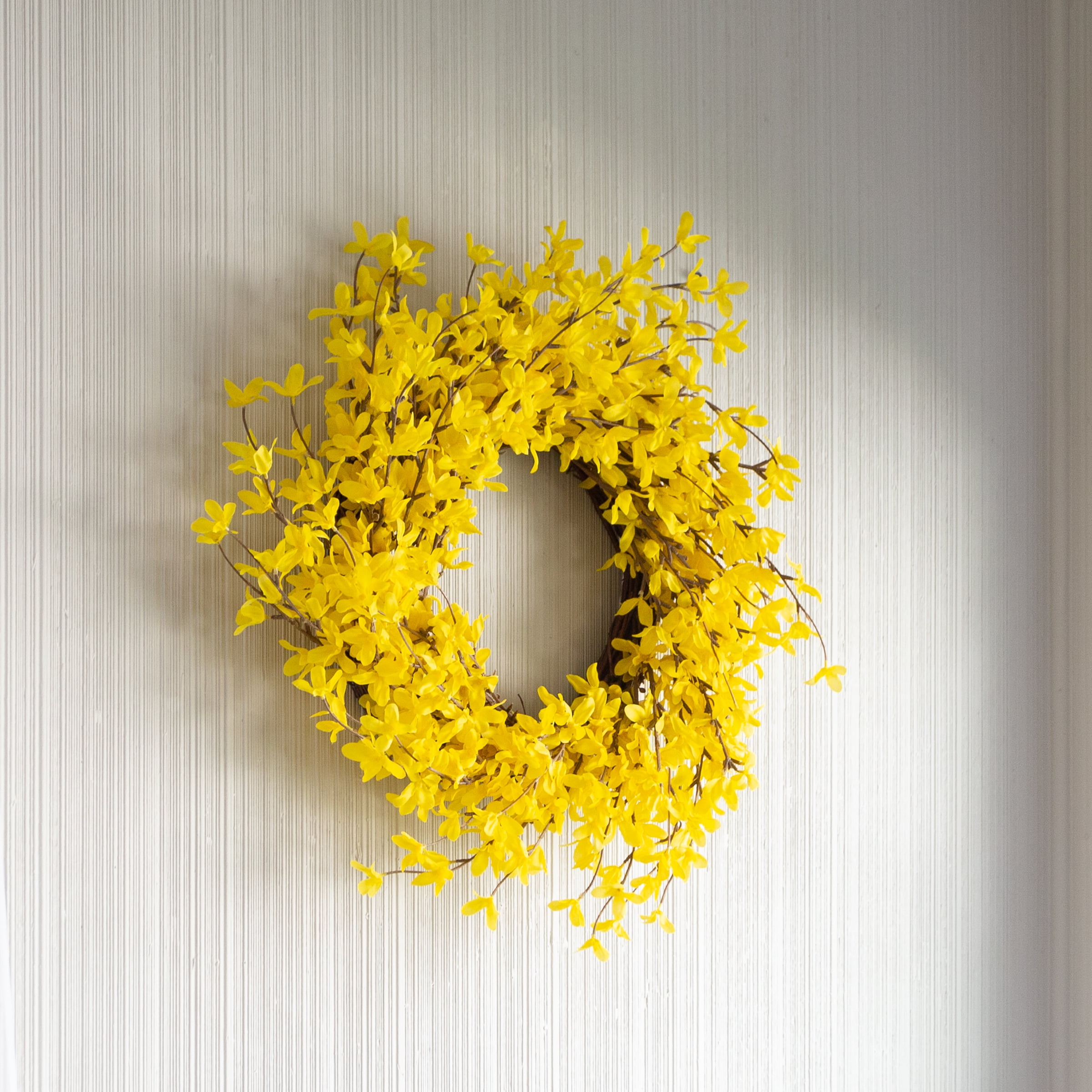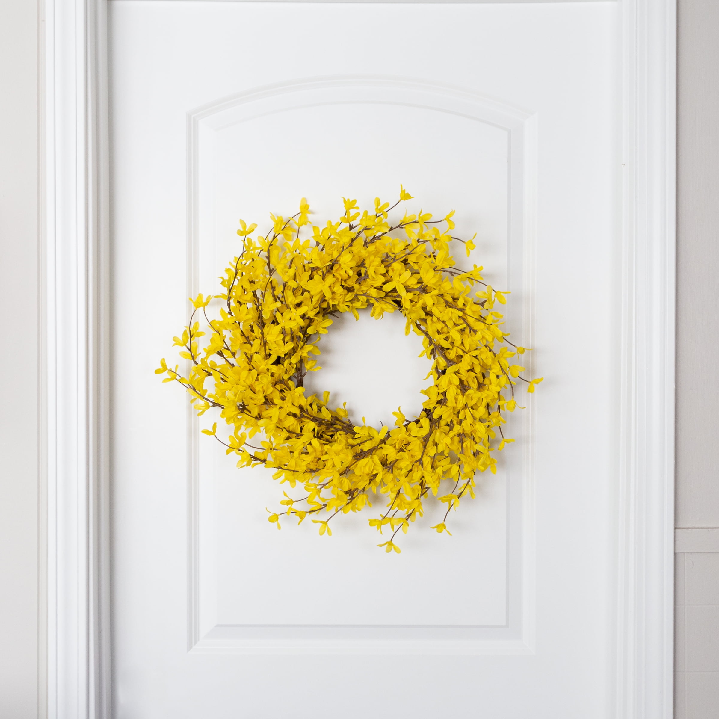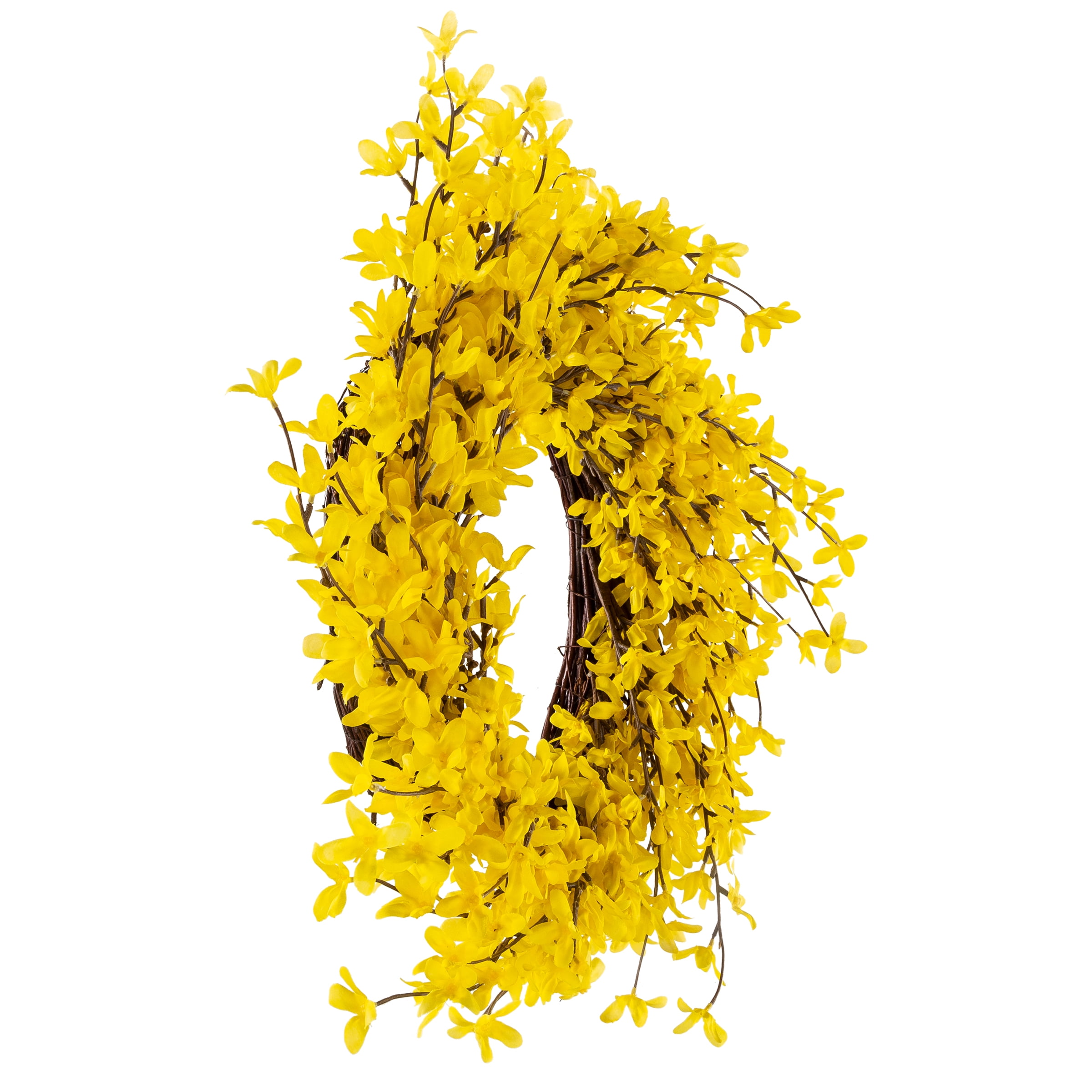 Pure Garden 24-Inch Artificial Yellow Forsythia Wreath for Home Decor