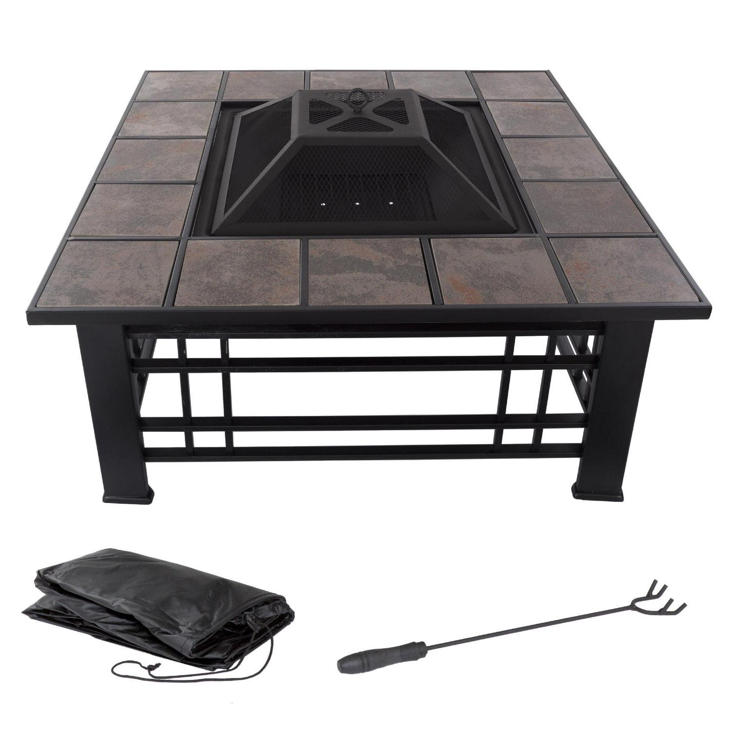 DURABLE DESIGN: Enjoy your tile wood burning Fire Pit without worry. Made from powder coated steel, this fire pit is lightweight and weatherproof for longer lasting outdoor use. The steel leg construction and decorative sturdy design will have long lasting appeal and would be a charming addition to your yard or patio.
