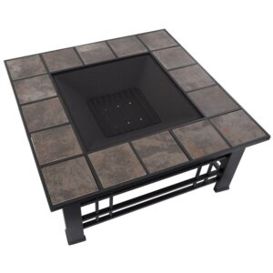 The 32″ Square Tile wood burning fire pit with 18.5″ Fire Bowl by Pure Garden has a simple finish that is attractive to match any outdoor living space decor. Relax by the warmth of an inviting fire on a cool summer night or crisp fall evening. Enjoy the warm glow on your patio and set the ambiance for a relaxing outdoor experience.