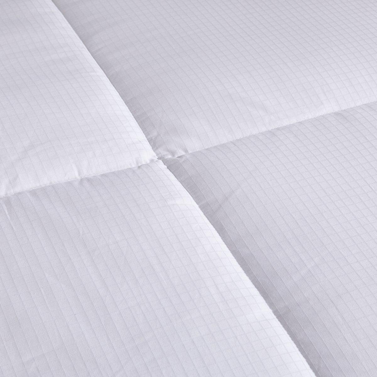 Outshell made of the finest 100% cotton and lofty down alternative polyester fill Size – twin : 68×88″, weight: 5.66 lbs, filling:37oz Fabric – outshell:100%cotton, 400thread count, filling: Goose down, 75% cluster fill Craft – sewn box construction, double stitched and piped edges with 4 corner loops Wash instruction: Dry clean only