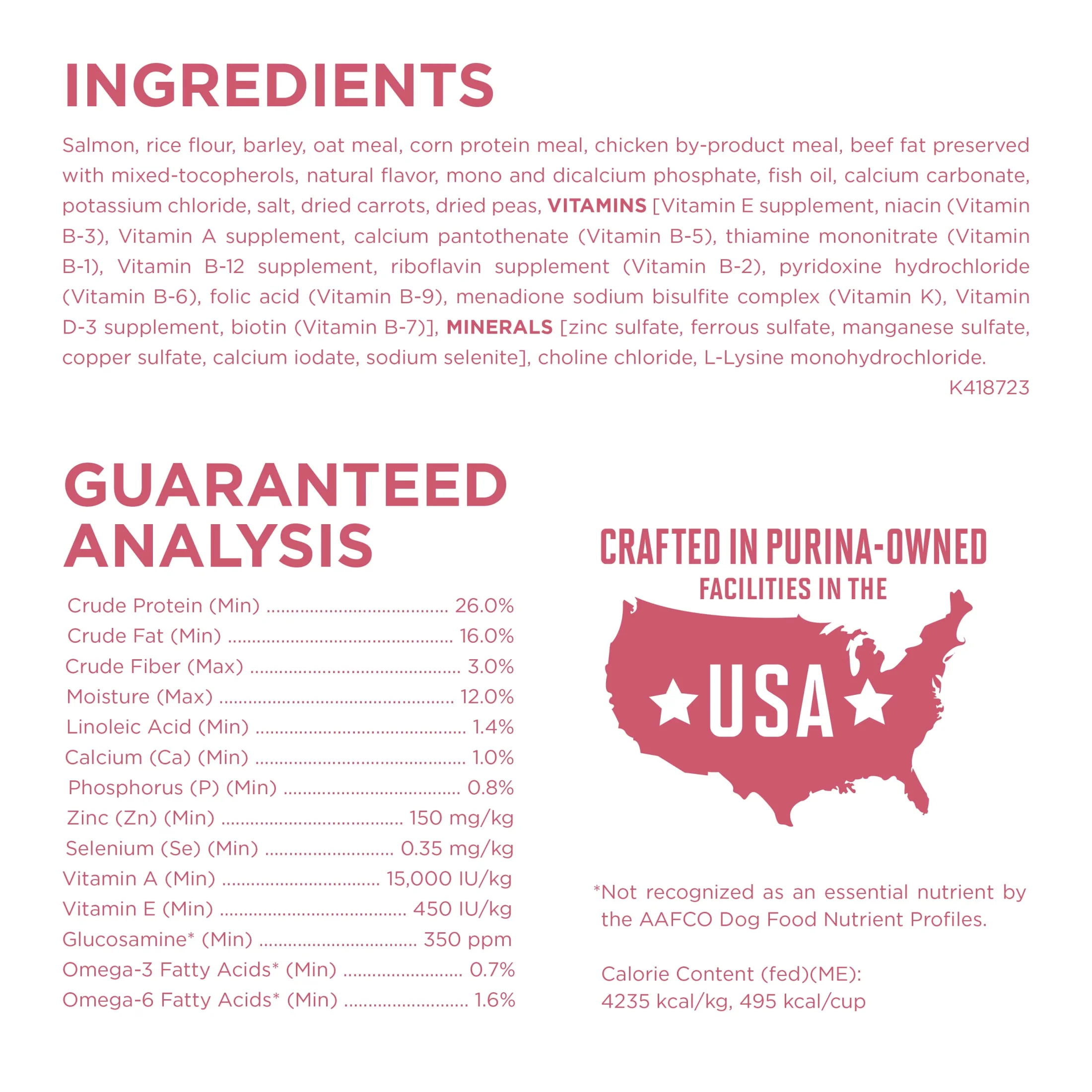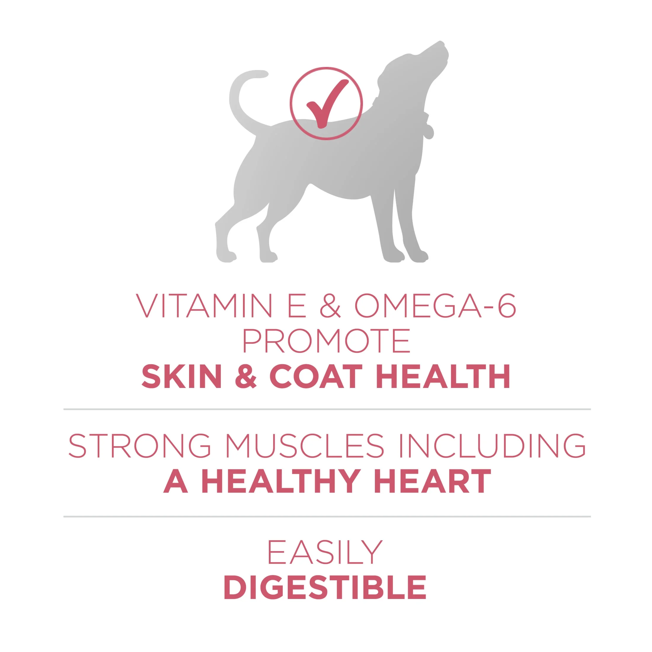 Purina One +Plus Dry Dog Food Skin and Coat Formula, Satisfy your dog with Purina ONE +Plus Natural Skin Coat Formula with added vitamins, minerals and nutrients adult dry dog food. This high protein dog food features real salmon as the #1 ingredient, and when combined with rice, oatmeal and other high-quality ingredients, delivers easy-to-digest nutrition for your dog. Our salmon natural dog food recipe has no artificial colors, flavors or preservatives. The Purina dog food formula also contains vitamin E and omega-6 fatty acids to promote your dog’s skin and coat health. With 100% nutrition for adult dogs and 0% fillers, every ingredient has a purpose.