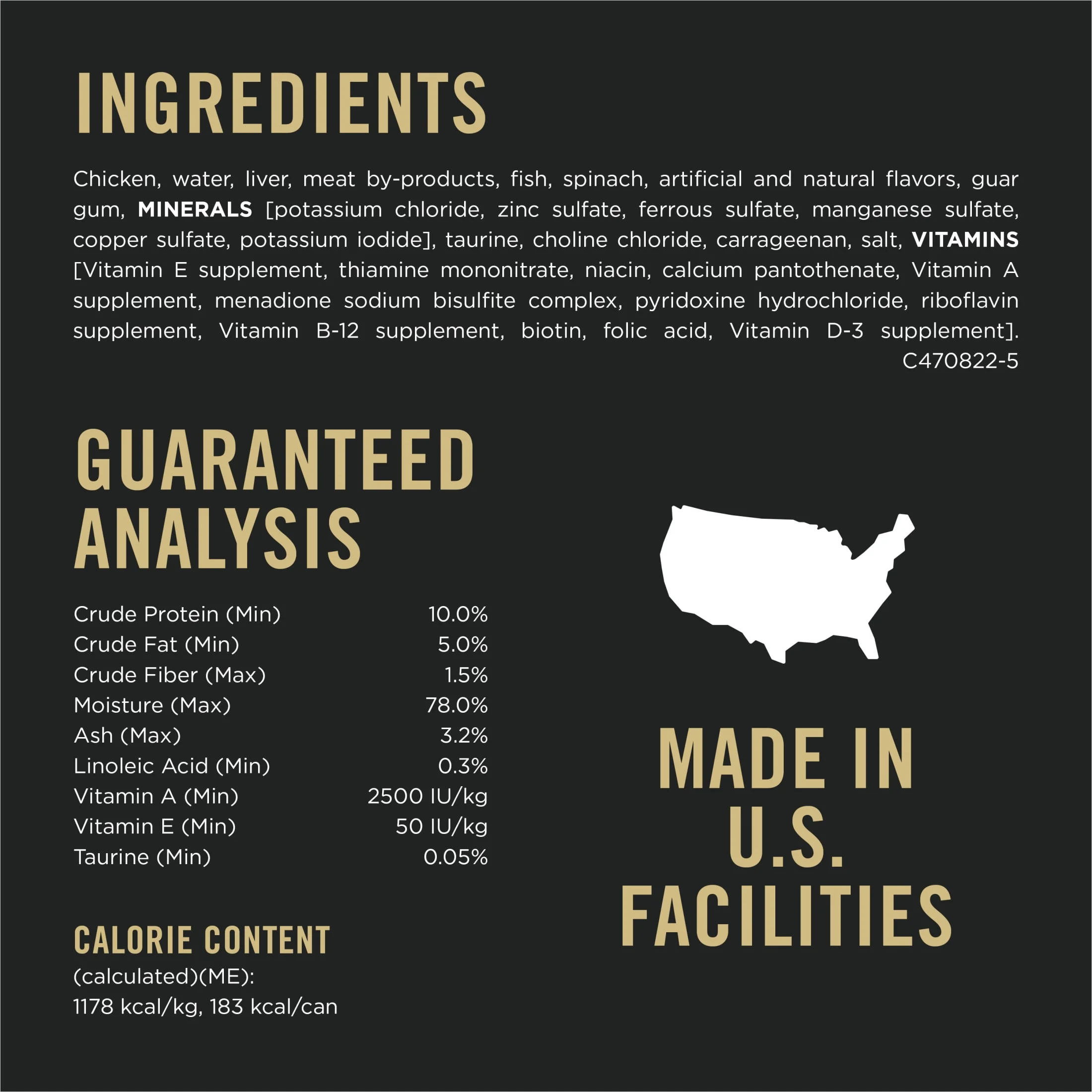 Purina Pro Plan Chicken and Spinach Entree Classic Wet Cat Food, Grain-Free, 3 oz Cans (24 Pack) Grain free cat food made with real chicken complemented with spinach and no artificial colors or preservatives Chicken pate cat food formula includes antioxidants for a healthy immune system and omega-6 fatty acids and vitamin A to nourish skin and coat Grain free wet cat food made with vitamin A and taurine to support healthy vision Adult cat food pate provides 100 percent complete and balanced nutrition and an optimal protein level for maintaining an ideal body condition Wet grain free cat food proudly manufactured at Purina-owned facilities Spoil your pet with Purina products. Reward yourself with points on every purchase. Download the myPurina app today