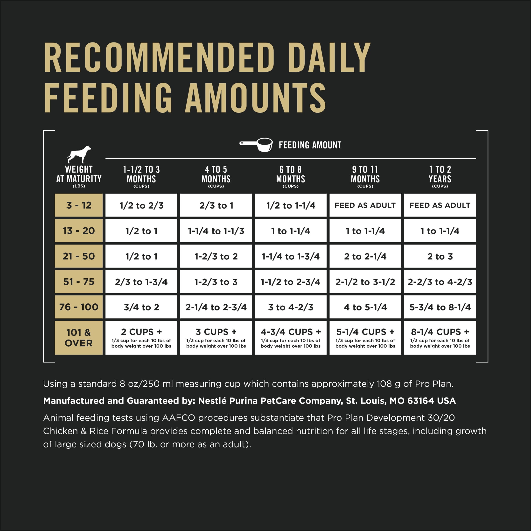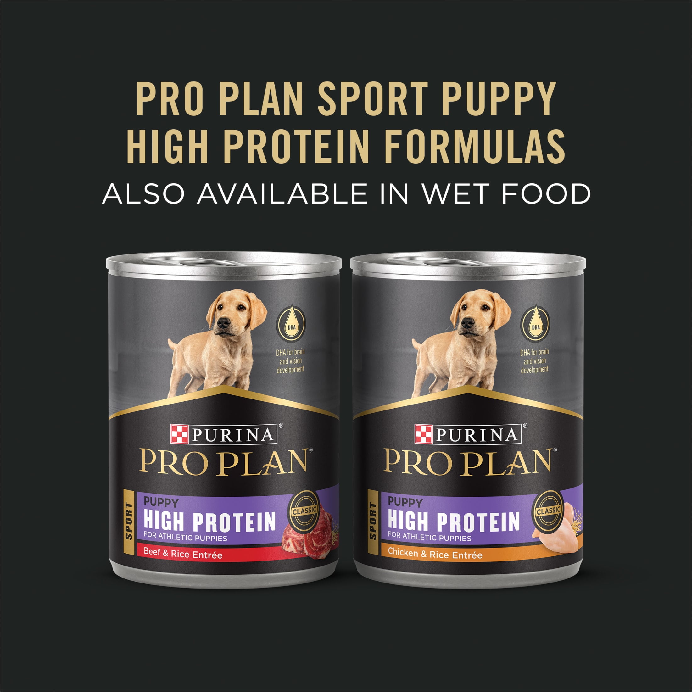 Real chicken is the number 1 ingredient in this high-quality Purina Pro Plan Sport Chicken and Rice Formula dry dog food for puppies Purina Pro Plan dog food for puppies including brain-nourishing nutrients, like DHA, EPA, taurine, choline, and vitamin C Puppy dog food promoting concentration, problem solving and trainability Dry dog food for puppies with 30 percent protein and 20 percent fat to support age-appropriate strength and endurance in active puppies from a veterinarian-recommended brand Complete and balanced puppy dog food with bone-supporting nutrients calcium, phosphorous and essential vitamins to promote healthy bone growth Spoil your pet with Purina products. Reward yourself with points on every purchase. Download the myPurina app today.