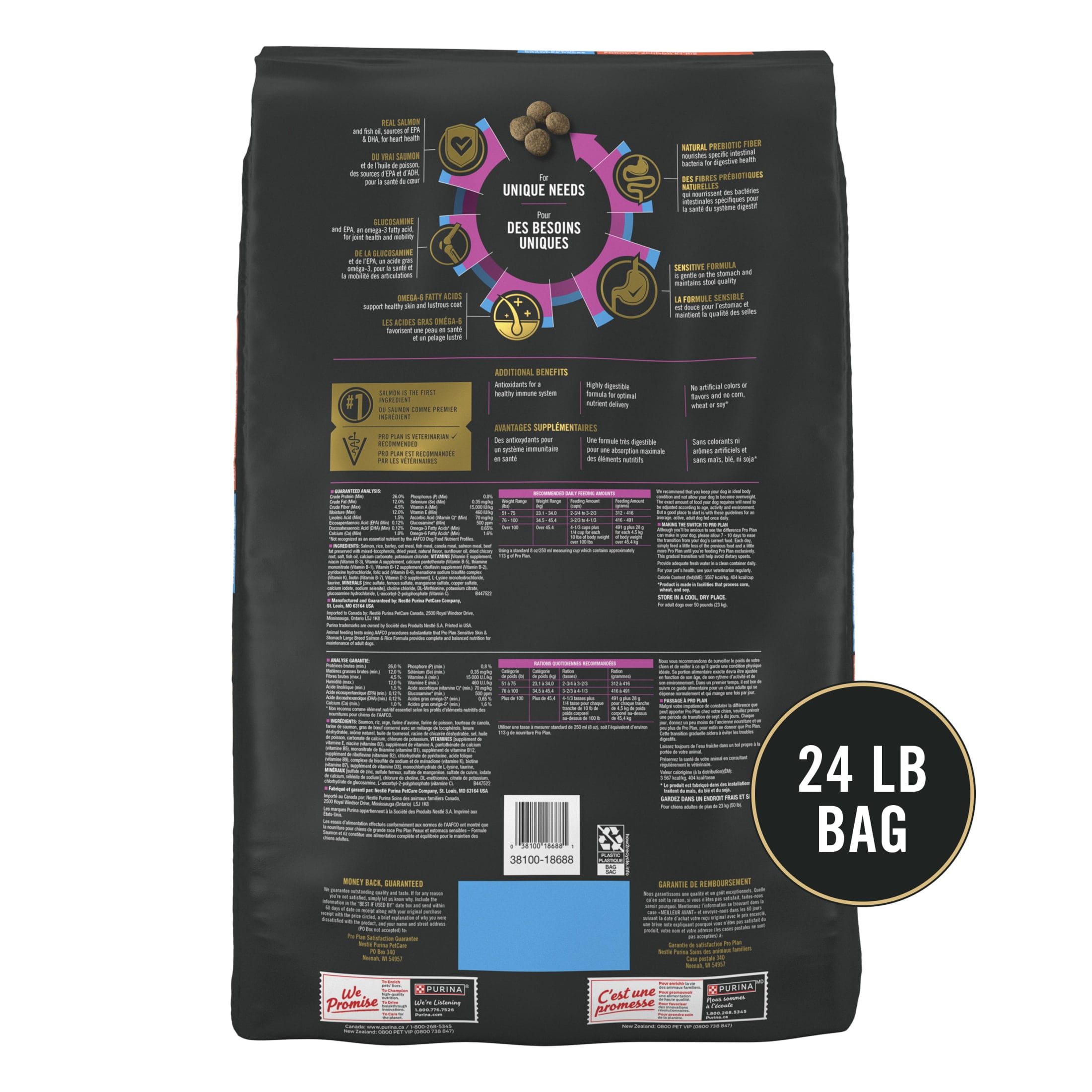 Purina Pro Plan Sensitive Skin and Sensitive Stomach Dog Food Large Breed Salmon and Rice Formula, 24 lb. Bag