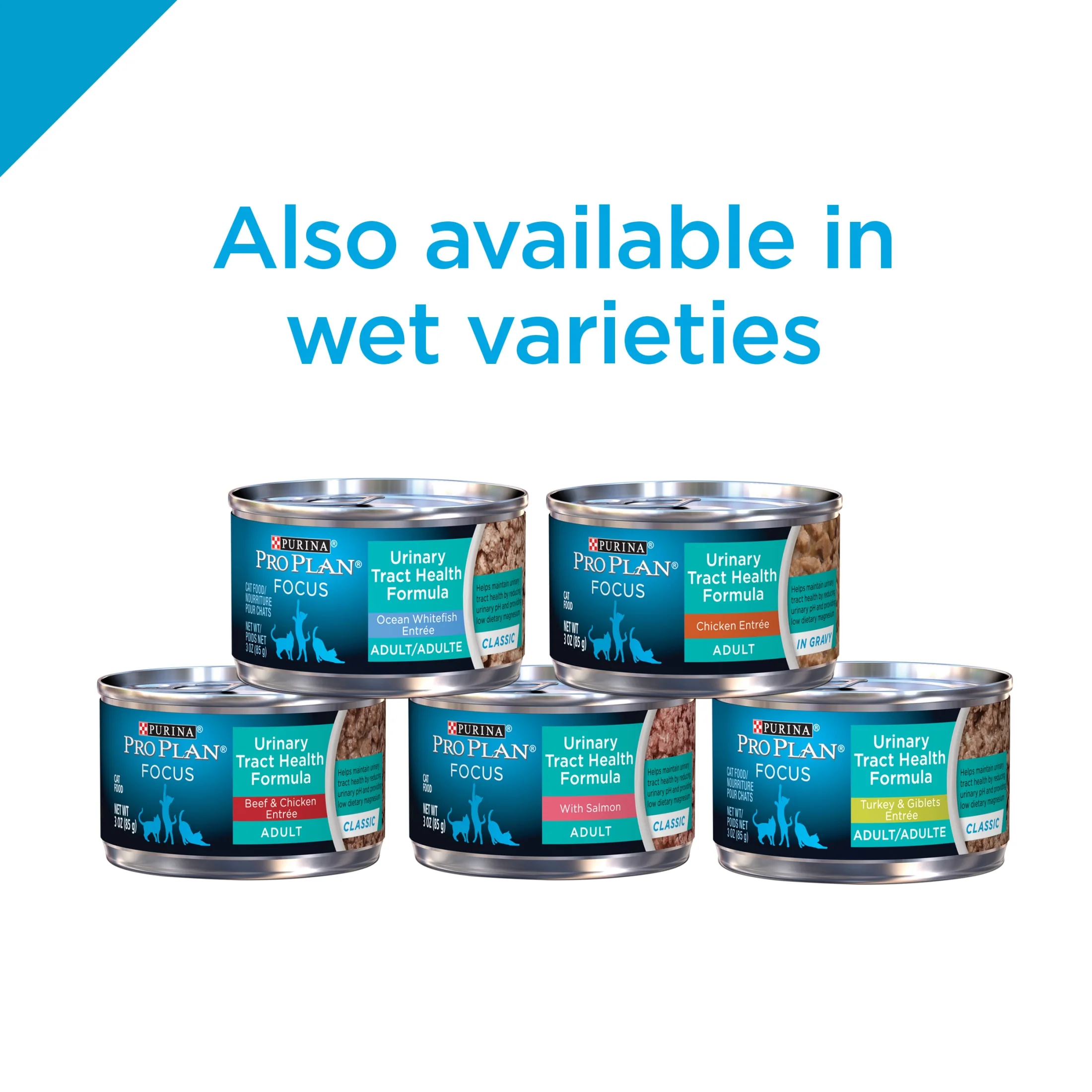 Purina Pro Plan Urinary Tract Health Chicken Rice, 16 lb Bag Maintains urinary tract health by reducing urinary pH and providing low dietary magnesium Made with real chicken Offers a taste cats love Used to be known as FOCUS Urinary Tract Health Chicken and Rice Formula Linoleic acid, an omega-6 fatty acid, to nourish skin and coat Spoil your pet with Purina products. Reward yourself with points on every purchase. Download the myPurina app today