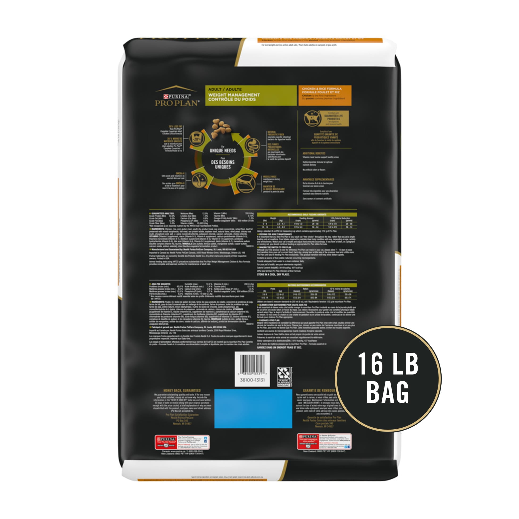 Purina Pro Plan Weight Management Dry Cat Food Chicken Rice, 16 lb Bag Promotes muscle mass maintenance during weight loss High protein formula, with real chicken as the first ingredient Fortified with guaranteed live probiotics to support digestive and immune health Used to be known as FOCUS Weight Management Chicken & Rice Formula 20 percent less fat than Pro Plan COMPLETE ESSENTIALS Adult Chicken & Rice Formula Spoil your pet with Purina products. Reward yourself with points on every purchase. Download the myPurina app today