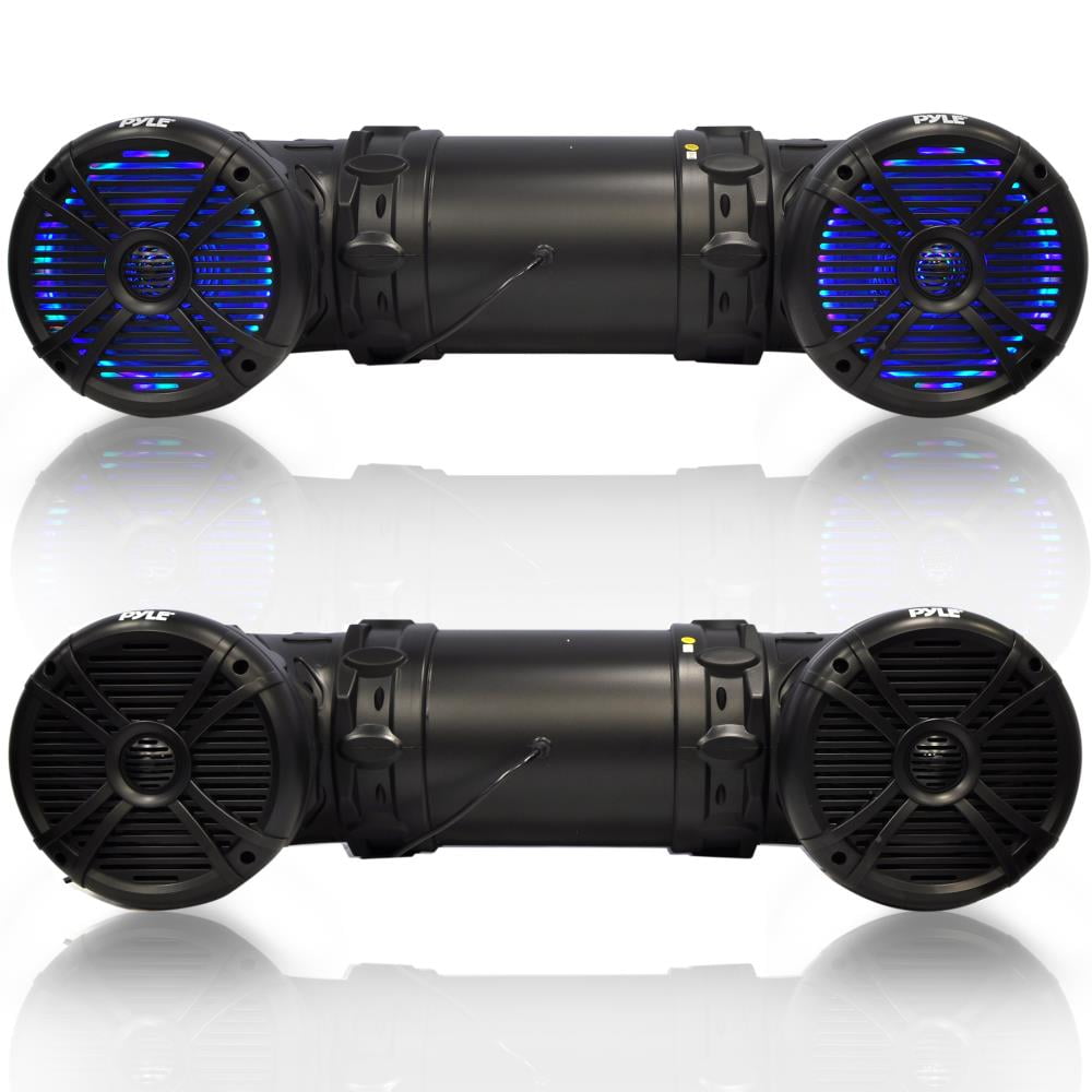 This Pyle Marine ATV Bluetooth Speaker will get the party started whether you’re indoors or out.This 1000 watt speaker has a rugged heavy-duty construction design with weatherproof and water-resistant housing. Perfect for any outdoor gathering, beach day, personal use, or even to install in your vehicle. Marine speaker offers Bluetooth connectivity that works with the latest devices, including iPhone, Android, smartphones, iPad, and tablets. Speaker also comes with an aux port allowing you to use all kinds of mp3 players or audio players.You can install this speaker in any of your vehicles easily thanks to the universal mounting design, ideal for ATV, UTV, 4x4s, golf carts, jetski, snowmobiles, and many more. The speaker includes highly customizable color-changing LED lights. Choose from up to 19 colors, and easily change their speed and brightness all with the included remote control.Play your music wherever you want and have a BLAST with the Pyle Marine ATV Bluetooth Speaker.