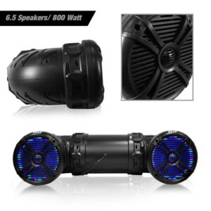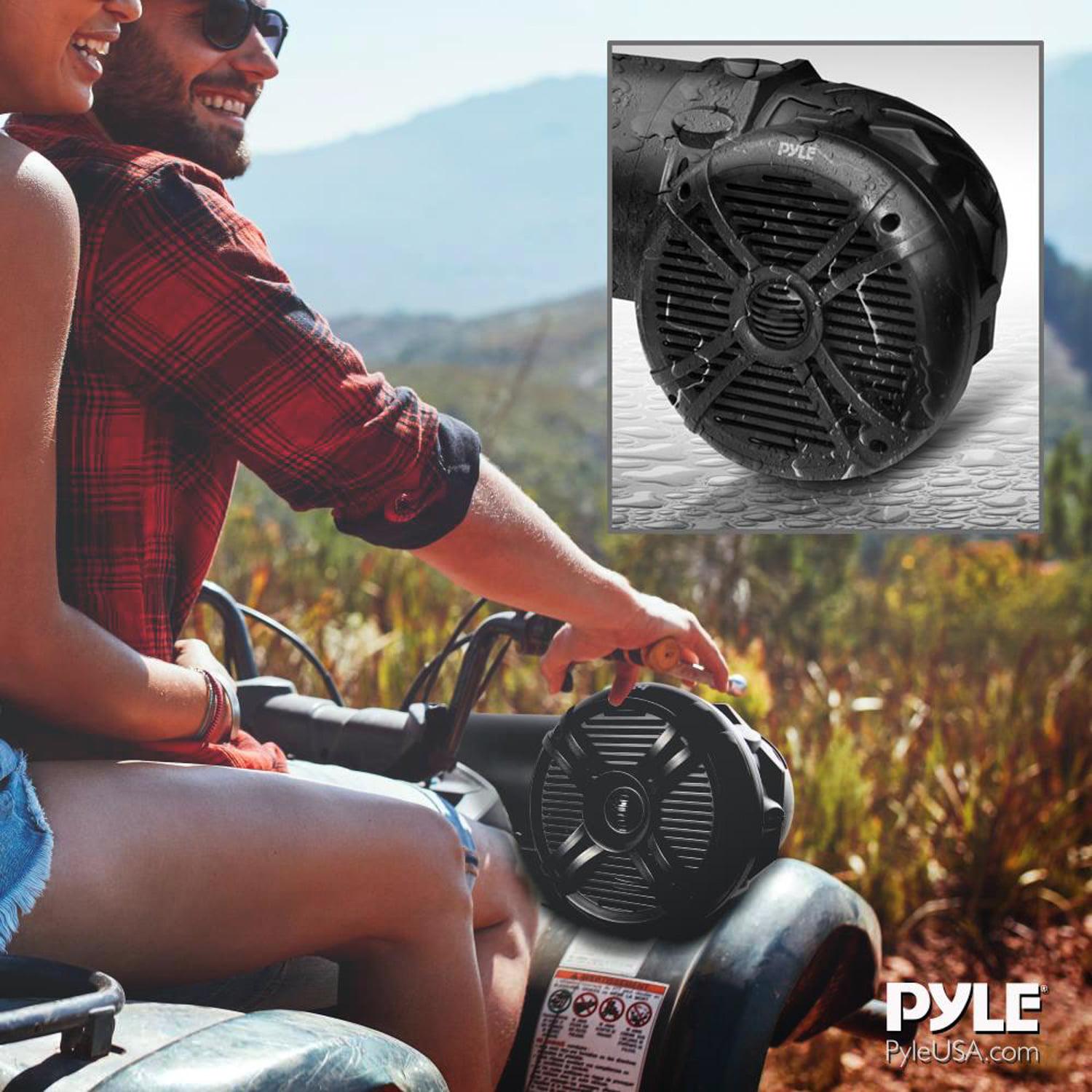 This Pyle Marine ATV Bluetooth Speaker will get the party started whether you’re indoors or out. This 800 watt speaker has a rugged heavy-duty construction design with a weatherproof and water-resistant housing. Perfect for any outdoor gathering, beach day, personal use, or even to install in your vehicle. Marine speaker offers Bluetooth connectivity that works with the latest devices, including iPhone, Android, smartphones, iPad, and tablets. Speaker also comes with an aux port allowing you to use all kinds of mp3 players or audio players. You can install this speaker in any of your vehicles easily thanks to the universal mounting design, ideal for ATV, UTV, 4x4s, golf carts, jetski, snowmobiles, and many more. The speaker includes highly customizable color-changing LED lights. Choose from up to 19 colors, and easily change their speed and brightness all with the included remote control. Play your music wherever you want and have a BLAST with the Pyle Marine ATV Bluetooth Speaker.
