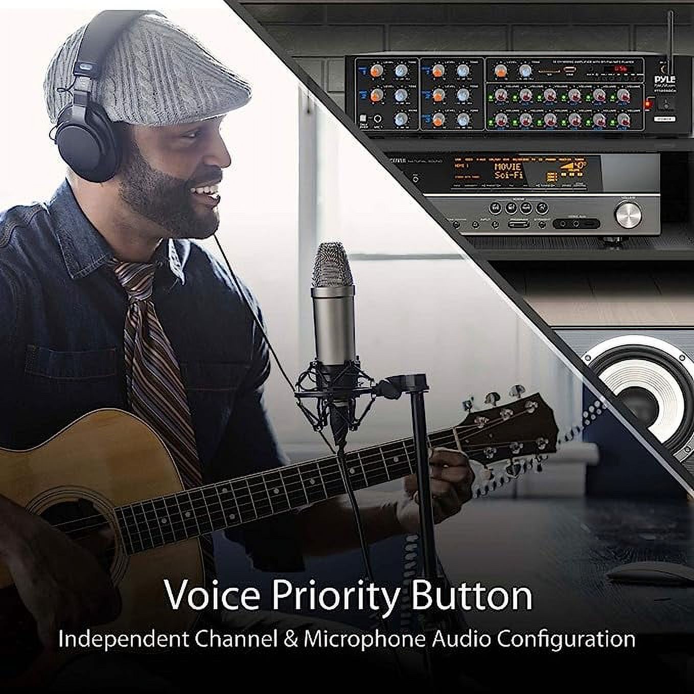 Pair up, turn up the tunes, and jam out with this Pyle PT12050CH Pro Audio Bluetooth 12-Channel Amplifier Sound Mixer. This 12-channel amplifier provides up to 6000 watts of max power between 4 and 8 ohms for a great sound experience. With 6 binding post output connectors, you’ll be able to hook up plenty of speakers for boosted sound. Built-in Bluetooth technology allows you to instantly stream wireless audio from your favorite devices with multiple inputs for versatile listening options. This studio receiver system also features 3 microphone inputs with talk-over and voice priority function, perfect for karaoke, performances, or making announcements. This sound system comes with detachable rack-mount brackets for convenience and portability. The front panel on this professional studio system provides the control center and a digital display that’s easy to read. For added safety, this Bluetooth receiver includes short circuit and overload protection. Perfect for at-home entertainment, this Pyle PT12050CH Pro Audio Bluetooth 12-Channel Amplifier Sound Mixer is powerful and offers a variety of music streaming ability. Keep the party going with this home stereo system.
