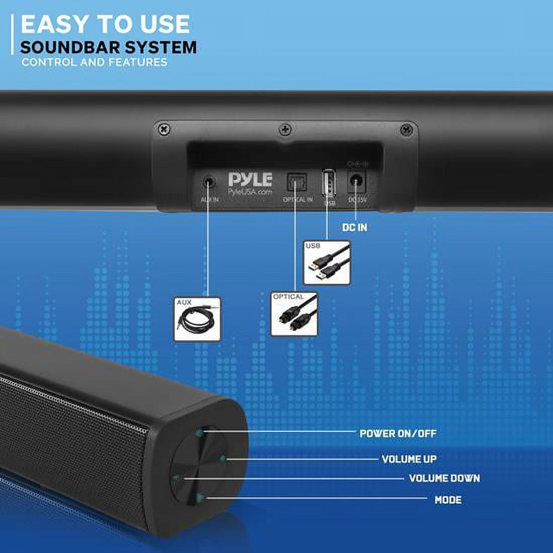 Pyle Wave Base Sound bar with Bluetooth for TV Tabletop Digital Audio Speaker System/Home Theater, Gaming, Projectors, with Remote Control, Inputs AUX, Optical in, USB – PSBV110B