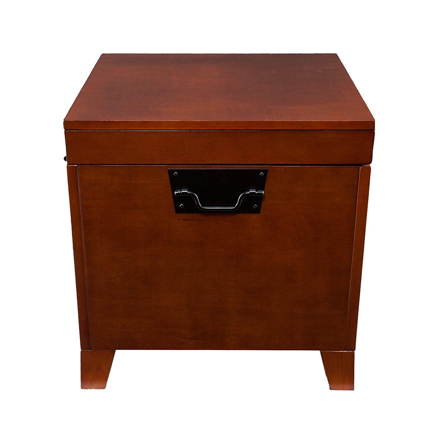 You multi-task, shouldn’t your furniture Well, say hello to the Pyramid Trunk Storage Bench Coffee Table! Display your cool stuff on the flat top and stow your not-so-cool stuff inside. The deep trunk space is ideal for storing extra blankets, books, and magazines. With its clean lines and black-finished hardware, this practical and pretty piece will look at home wherever you put it. Made of durable MDF wood with pine veneer, highlighted with a lasting Mission Oak finish, feet are solid pine. This coffee table will stand up to years of use, maybe even abuse. You can’t go wrong with the Pyramid Trunk Storage Bench Coffee Table – this is where form meets multi-function. Tip: You can pair this versatile coffee table with the matching Pyramid Trunk End Table for a complete set.