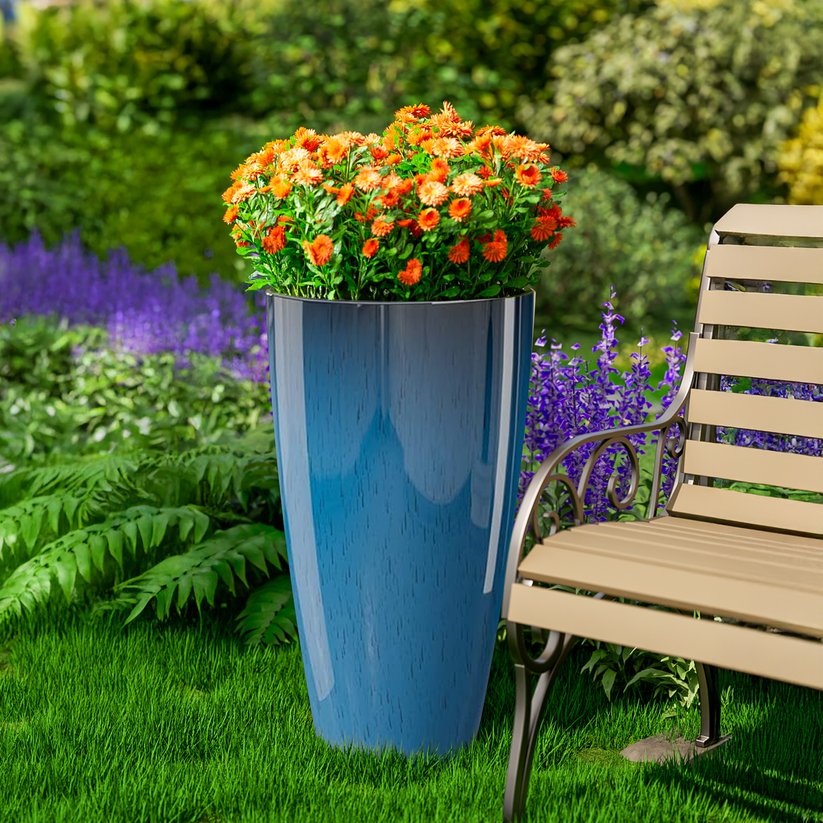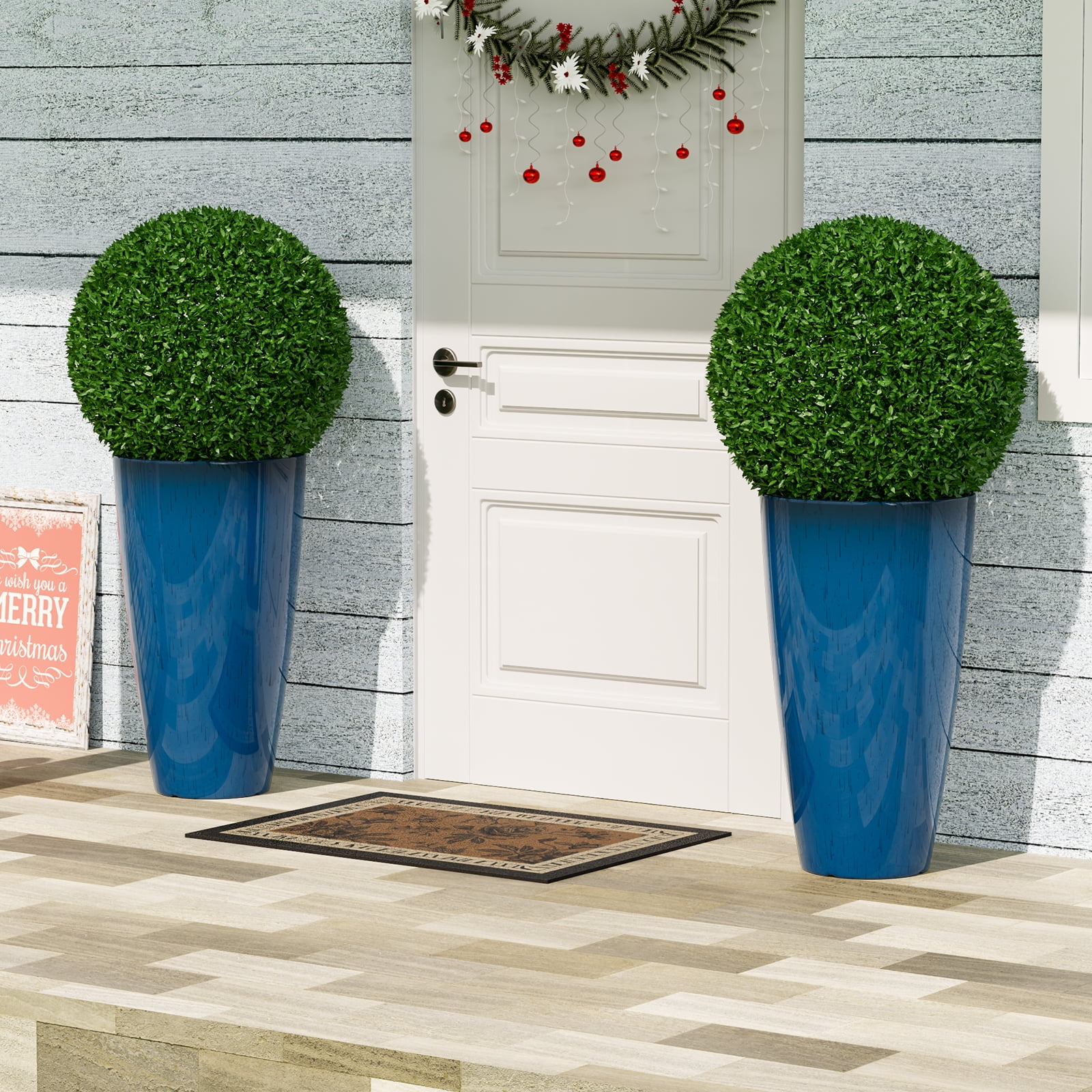 21 inch Tall Planters for Outdoor Plants Set of 2,Tall Plant Pots with Drainage Hole,Large Flower Pots for Indoor Front Porch Garden Home Patio,Blue