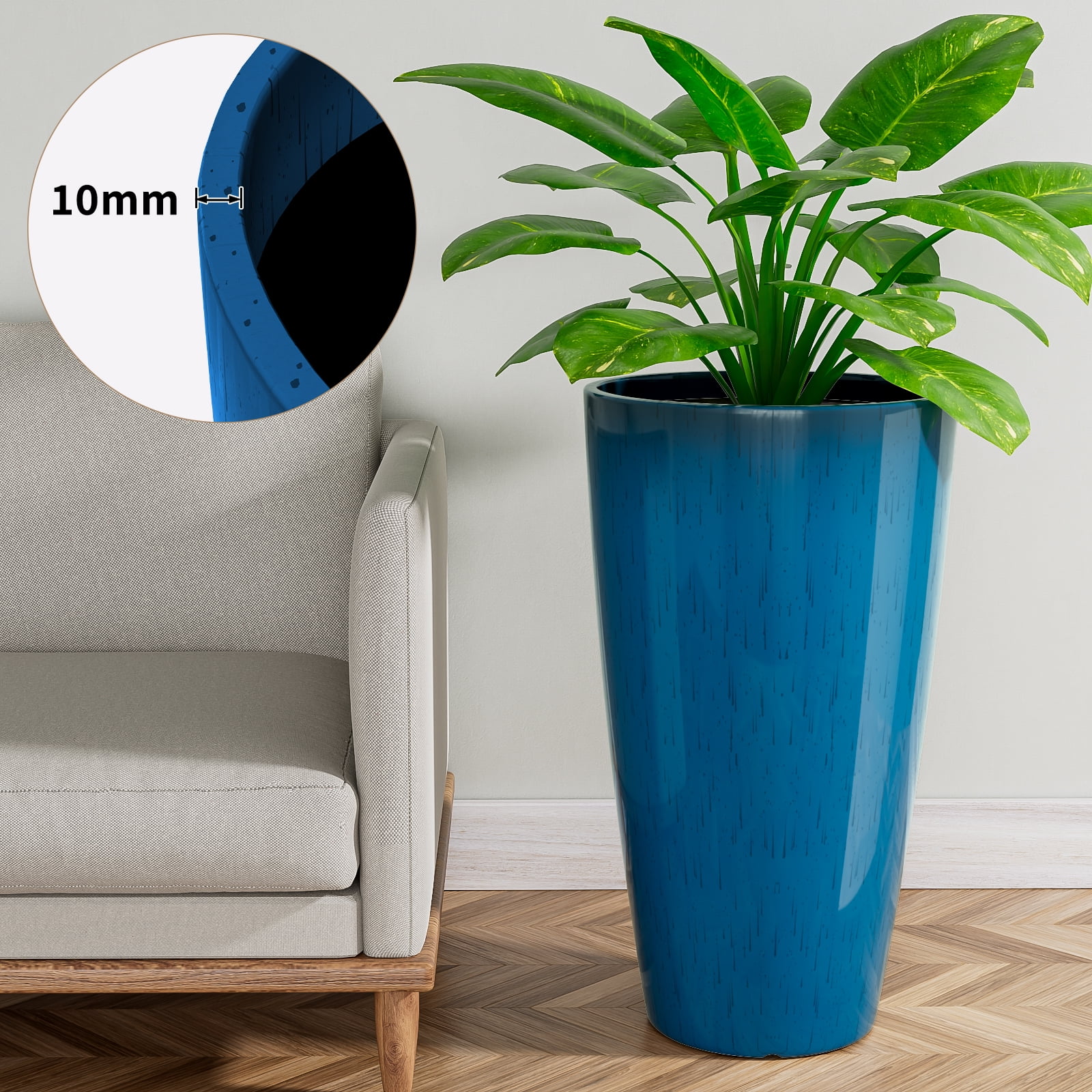 【Durable Material】Made from premium recycled plastic, natural stone powder. This planter set is sustainable meanwhile features a thick, sturdy wall, it’s durable enough for long-term use. 【Indoor And Outdoor Large Tall Planters】Suit for front porch planters, decorating home, patio, garden and deck. 【Smooth Round Design】Curved contours provide a touch of classic personality. The smooth lines and round shape of these large outdoor planters will help you maintain a sleek look throughout your space. 【Pots For Plants Indoor With Drainage】Each plastic flower planter pots come with a drainage hole at the bottom to let excess water flow out,help to prolong the life of your plants and preventing them from drowning. 【10 mm thick】Our outdoor planters With 10 mm thick sidewalls, tall planter has a drainage hole at the bottom, it can drain or retain water and allow air to penetrate the soil.