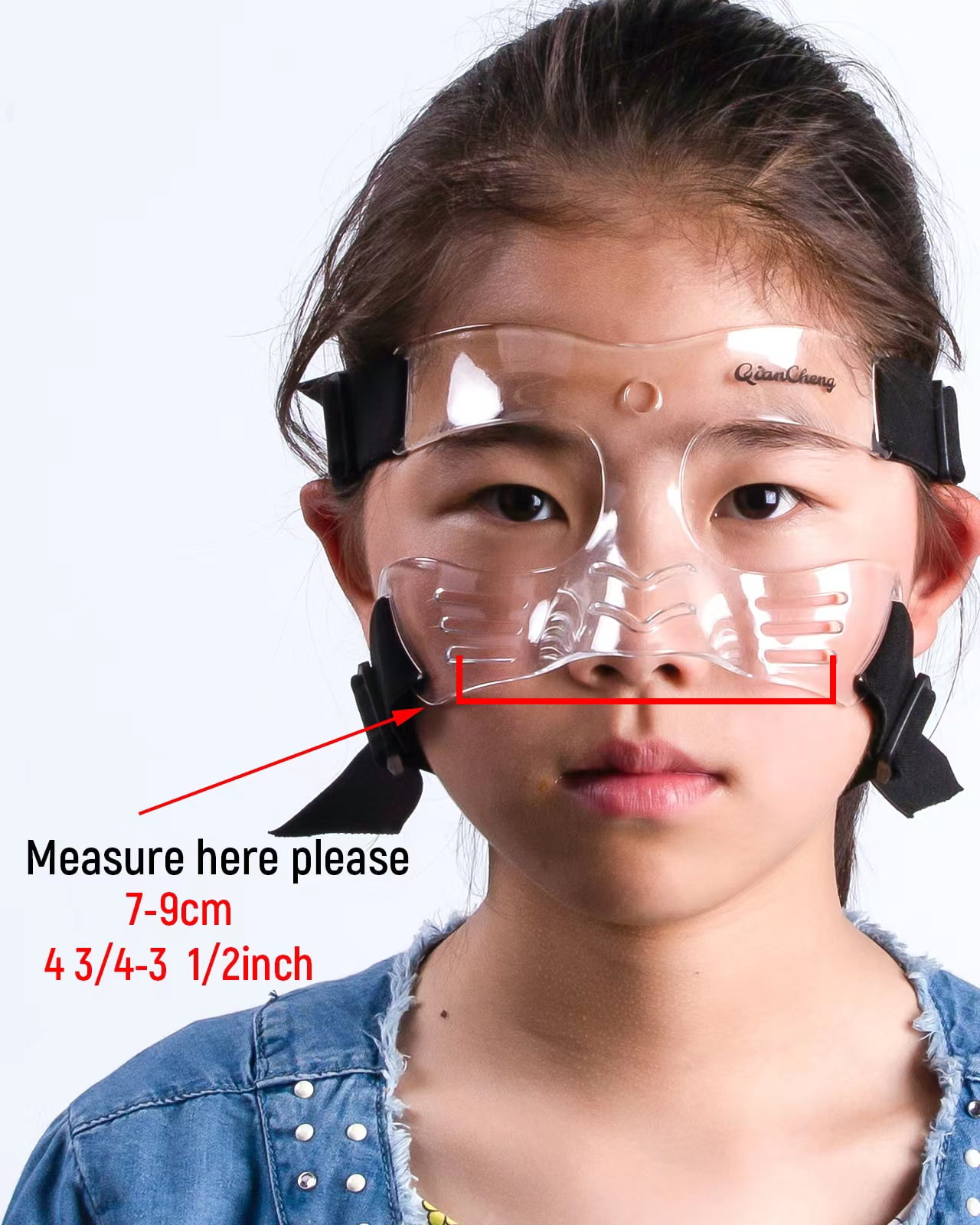 Shatterproof and Washable—Nose Guard helps to avoid injury from impact on the face after surgery. Made of crack-proof and shatter-proof material, it is elastic and durable, will not break even if hit hard or dropped. Just clean it directly with water. Comes with carrying bag, easy to store and carry. Effective Protection—Qiancheng nose protector face guard not only provides effective protection for the broken nose, but also helps protect your face from maxillary, nasal, zygomatic and orbital injuries. It can be used as a basketball face mask, soccer head guard, football face mask, softball mask, etc. It can be used as a post-operative nose protector or a broken nose or fracture protector. Comfortable and Breathable—The sports mask comes with a silicone pad, which is more comfortable than other products on the market. Silicone pads make the sports mask fit your face better, non-slip and cushioning. The unique design makes the clear face mask more breathable and has a clearer vision. Adjustable Safety Belt—The safety belt of the clear face mask shield can be adjusted according to your own needs, making it more fit and comfortable. Suitable for sports such as basketball, football, volleyball, wrestling, or karate. Suitable for—Many years of research and design. Designed for children and teenagers. Comes with soft padding. Cheekbone Width Range: 2.7-3.5 inches (7cm-9cm). Measure according to the picture or consult us please. If you feel sliding between your forehead and nose, add more silicone pad please.