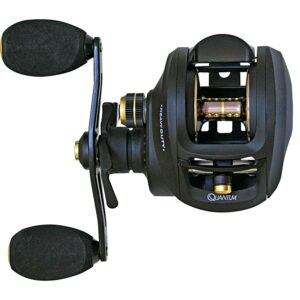 – SUPERIOR DESIGN: This baitcast reel features a 6.1:1 gear ratio and a 28 IPT (inches per turn) for a smooth and consistent retrieve. The ceramic carbon drag system can hold up to 25-pounds of max drag giving you the ultimate in design and strength to reel in your prized catch