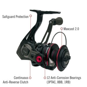 – SUPERIOR DESIGN: This spinning reel features a 6.0:1 gear ratio and a 32 IPT (inches per turn) for a smooth and consistent retrieve. The front-adjustable drag can hold up to 18-pounds of max drag giving you the ultimate in design and strength to reel in your prized catch