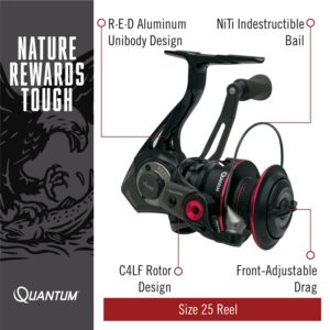 Quantum Smoke Spinning Fishing Reel, Size 25 Reel, Changeable Right- or Left-Hand Retrieve, Continuous Anti-Reverse Clutch with NiTi Indestructible Bail, SCR Alloy Frame, 6.0:1 Gear Ratio, Black
