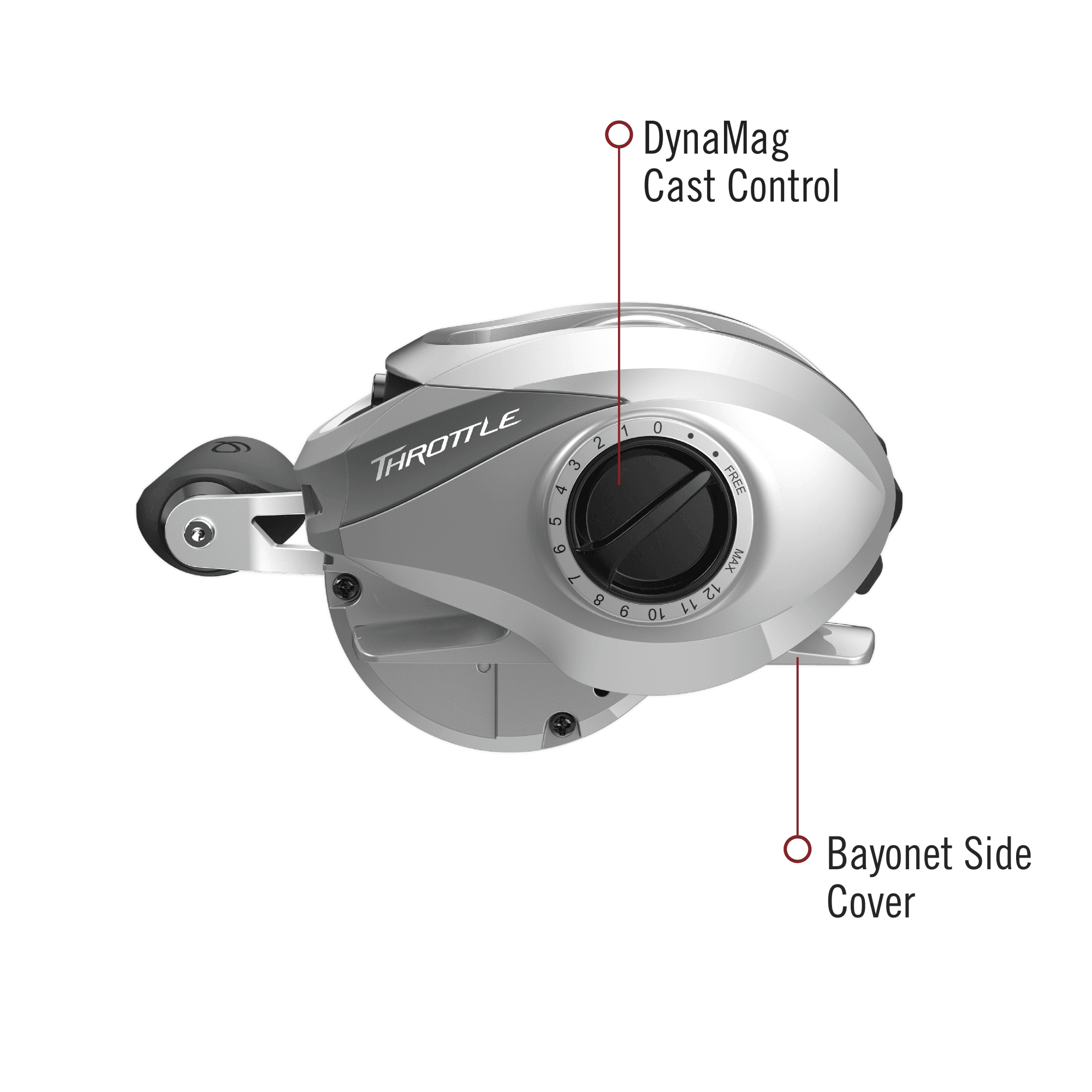 Quantum Throttle Baitcast Fishing Reel, Size 100 Reel, Right-Hand Retrieve, Silver