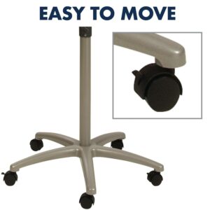 - Wheeled base allows for easy mobility and locks in place for stable presenting