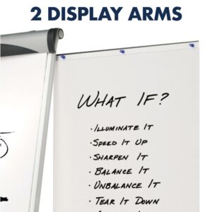 – Two extendable arms hold flipchart pages for versatile presenting options