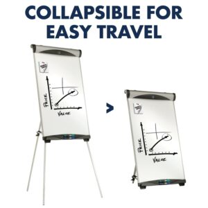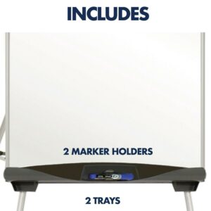 Take your presentation on the go with the Quartet Euro Nano-Clean Magnetic Presentation Easel. Sealed at the nano level, Nano-Clean technology prevents ink from penetrating the board surface. This prevents the board from staining or ghosting. This easel has a tripod bad with telescoping lets for floor or tabletop use. Stands 73 1/2″ tall when fully extended. Use magnets to post documents on the magnetic dry-erase surface or display flipchart pages on the two extendable arms. Hooks and clamps are included to hold flipcharts and provide easy sheet tear-away. The easel has a silver frame and measures 36″ x 24″. Comes with a 10 year warranty and built-in storage space for markers.