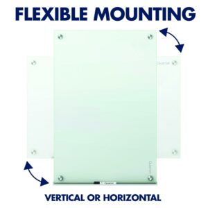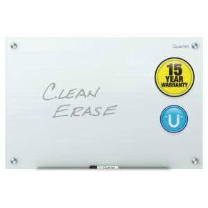Quartet Infinity Glass Dry Erase Board has a frameless glass design that appears to float on your wall. Made with non-absorbent glass, you can write, erase and rewrite on a clean surface every time, without fear of stains or ghosting. The strong tempered glass surface resists scratches and dents and is ideal for heavy use. Plus, the magnetic, steel-backed glass makes it easy to hang papers and documents instantly. Installation is simple with the included pass-through mounting hardware. Board comes with limited 15 year warranty, a removable accessory tray, one marker and two high power glass board magnets for your convenience.