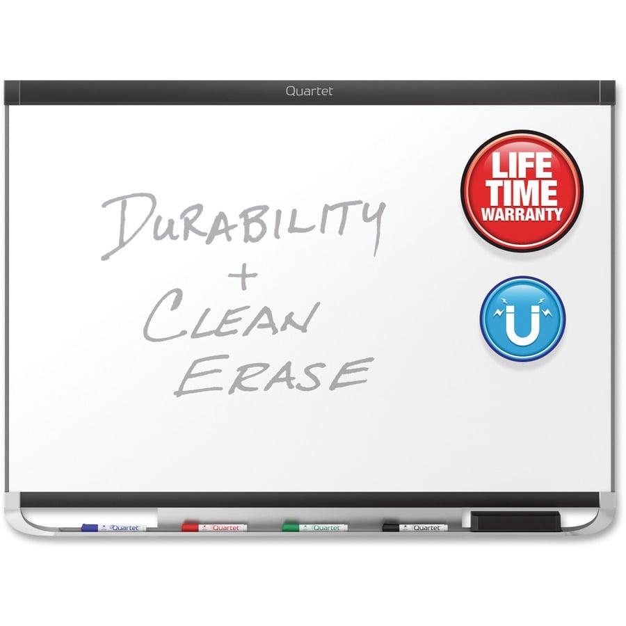 Porcelain board delivers the best performance in any busy office environment. The porcelain whiteboard surface is extremely durable to prevent it from staining, ghosting, scratching or denting. Magnetic surface allows it to double as a magnetic bulletin board. Pass-through mounting hardware makes it incredibly simple to hang the board in an optimal location. Durable construction withstands heavy, daily use and is suitable for areas with frequent traffic. Specialized board frame provides additional functionality and convenient access to markers, erasers and more. Quartet Prestige 2 Dry-Erase Board, 1 / Each (Quantity)