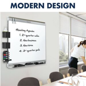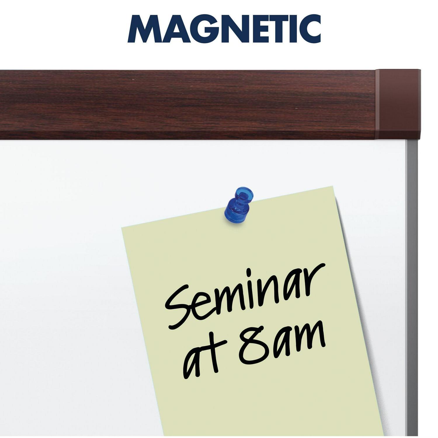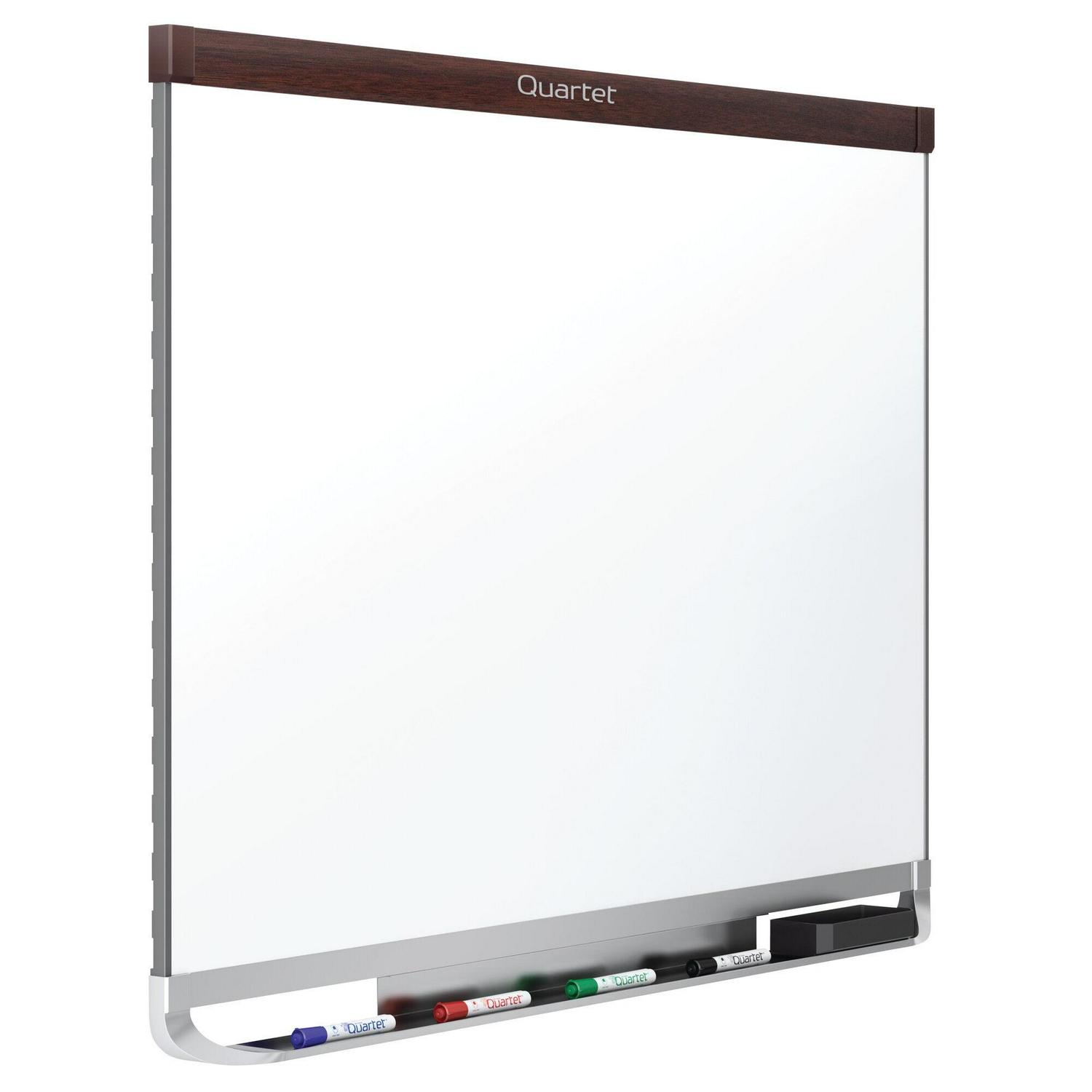 Prestige 2 DuraMax porcelain board features Quartet’s most durable writing surface. Exceptionally resilient and smooth, the porcelain surface will not ghost, stain, scratch or dent over time despite years of heavy e. The surface of this whiteboard is also magnetic so that it can double as a magnetic bulletin board. With a stylish metal frame and attached marker tray, this top-of-the-line board is a eful addition to any office space. Hang board quickly and easily on any wall ing the included, pass-through mounting hardware. Sleek, mahogany finish frame complements any office environment and is made of wood. Whiteboard also features a full-length marker tray that is specially designed to securely hold accessories. Prestige Connects accessories (sold separately) quickly and easily attach to the specialized frame to provide convenient access to board essentials. Minimal cleaning of board surface is recommended. Board includes four Quartet dry-erase markers with chisel tips. Quartet Prestige 2 Dry-Erase Board, 1 Each (Quantity)