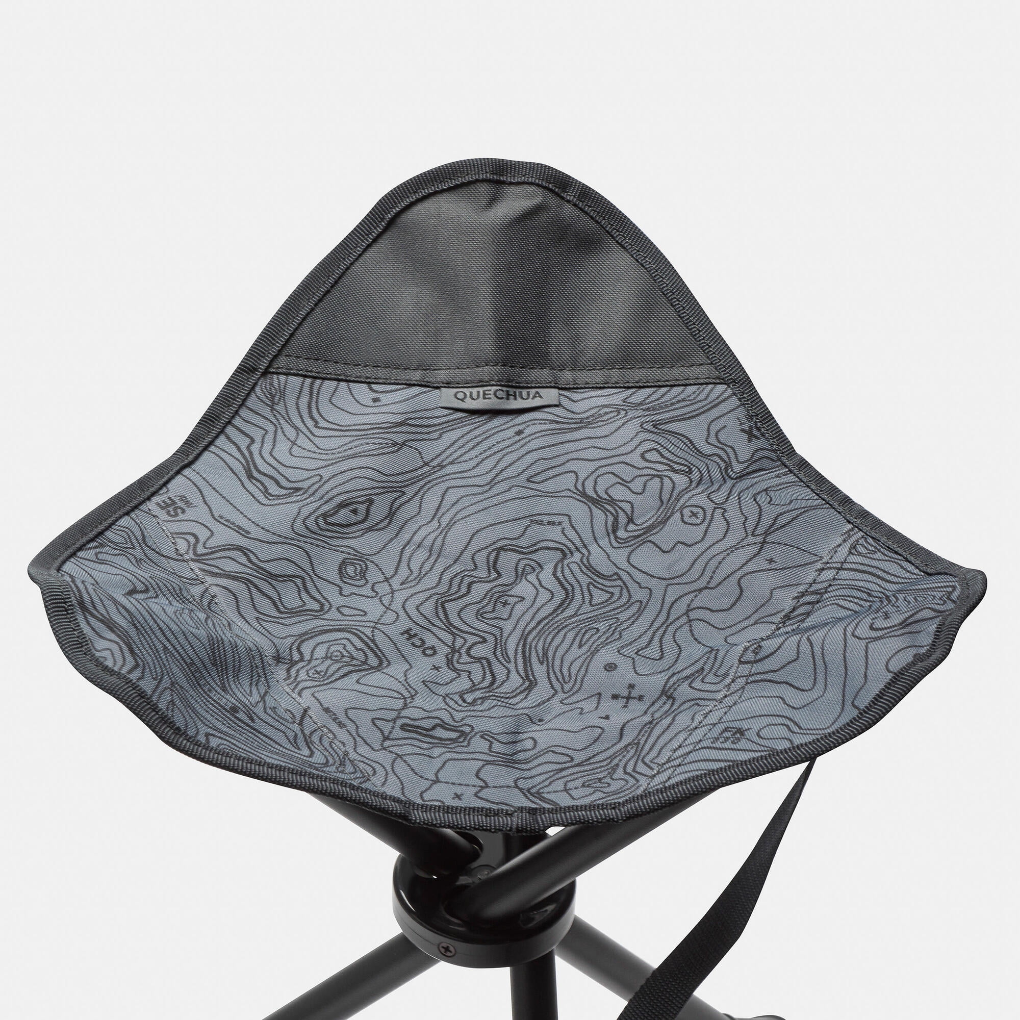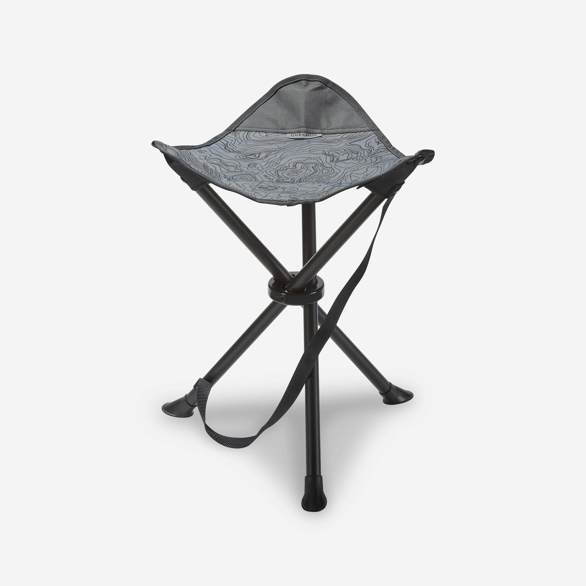Decathlon Quechua Camping Stool, Black, 2.2 lbs An accessible seat that passes all our durability tests. Light and compact, this tripod is a simple, easy-to-carry solution. Designed for adult campers who wish to simply sit down. Compact design Folded dimensions: 23.6″ x 3.5″ x 3.5″ / 5 L. Weight 2.2lbs. Integrated carry strap User comfort Seat height 16.1″. Easy to use Easy to unfold Elasticated strap to keep the tripod folded. Durability Very strong tubes and fabric. Maximum load 242 lbs.
