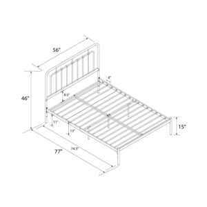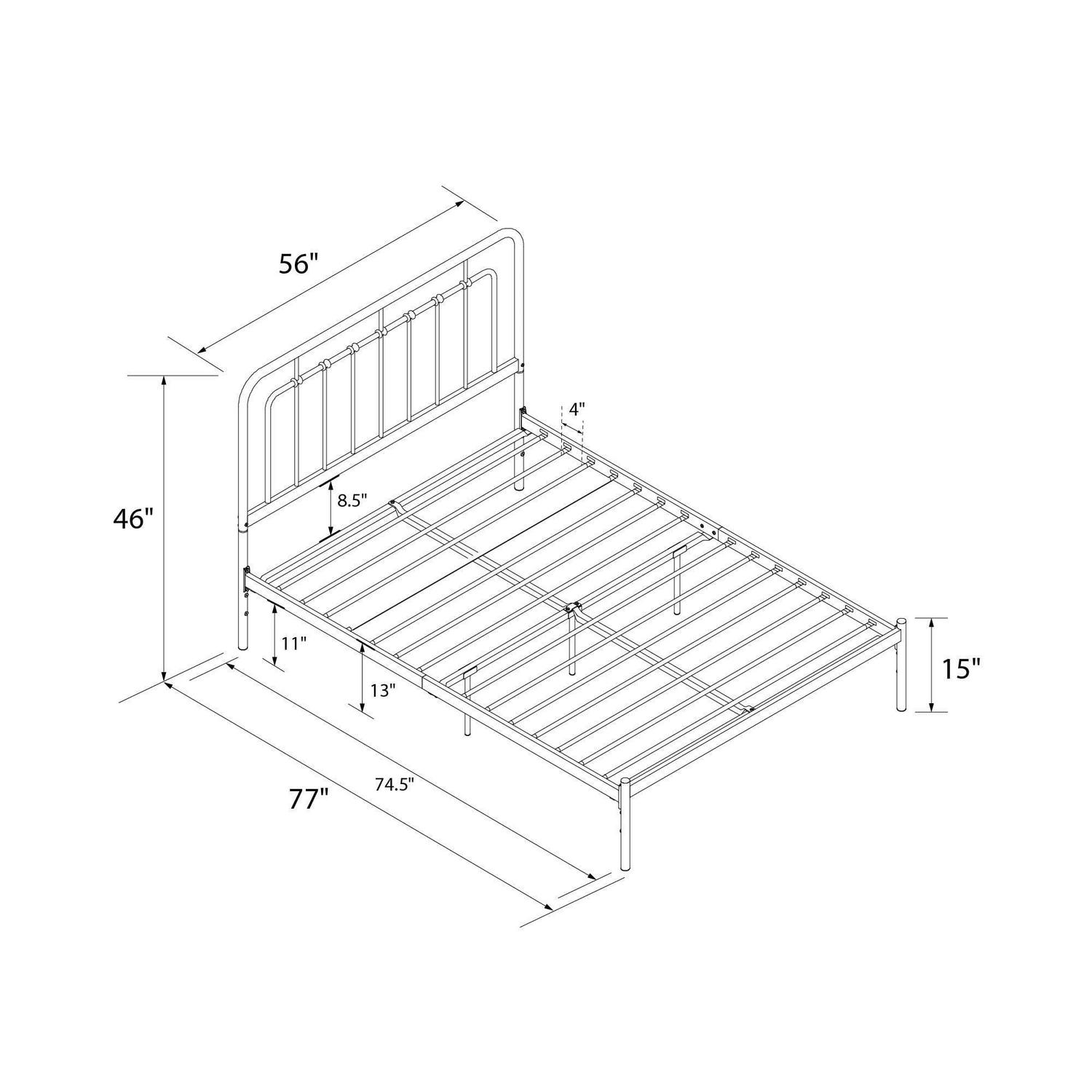 – Carefree coastal metal platform bed brandishes modern low-key style in spades with decorative rings accenting the cylinder-shaped inner bars of the rounded edge headboard. Gives your bedroom a big look without taking up lots of furniture space