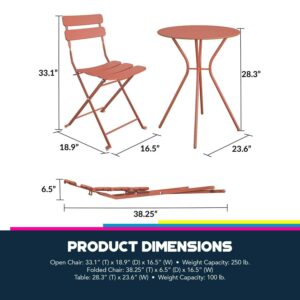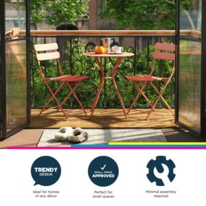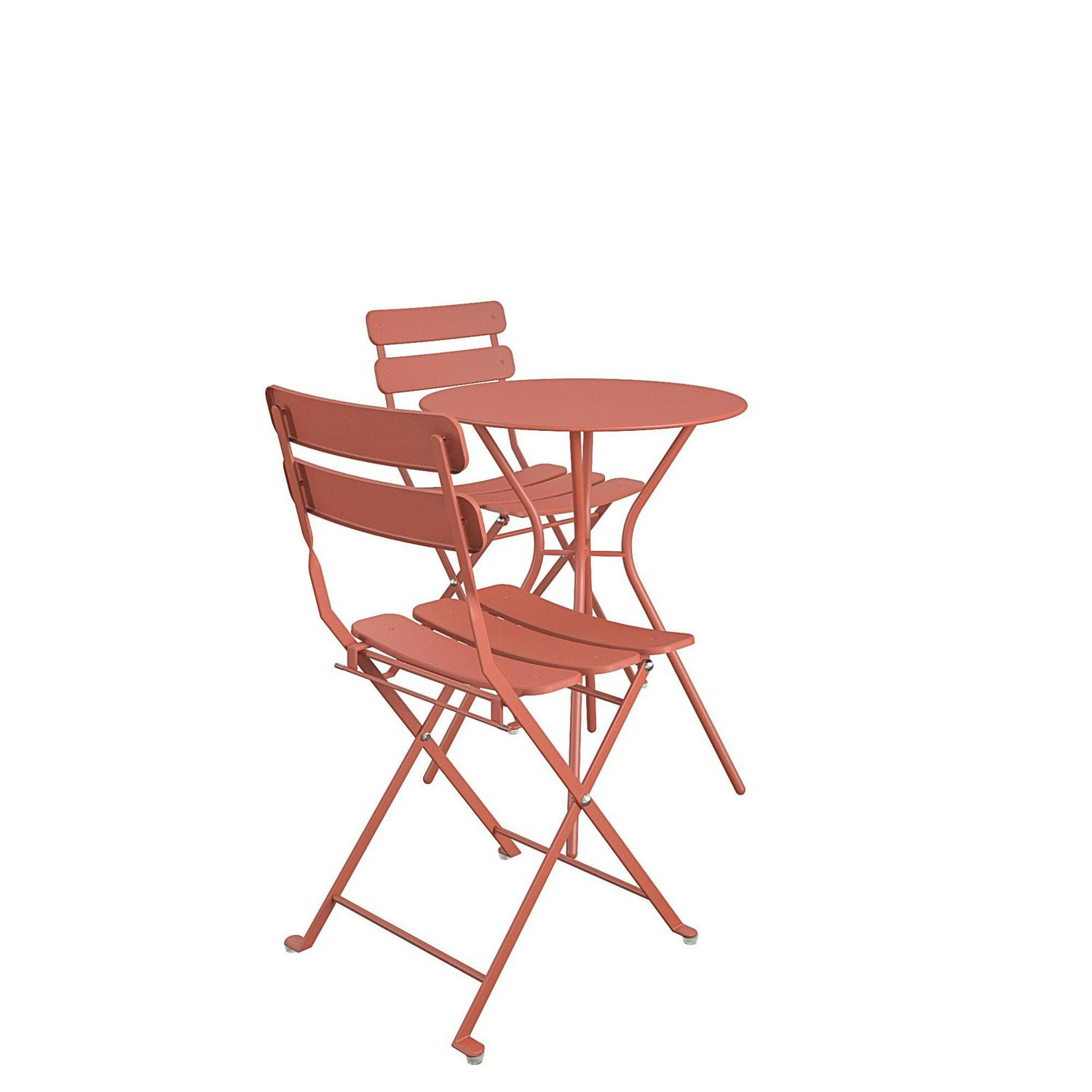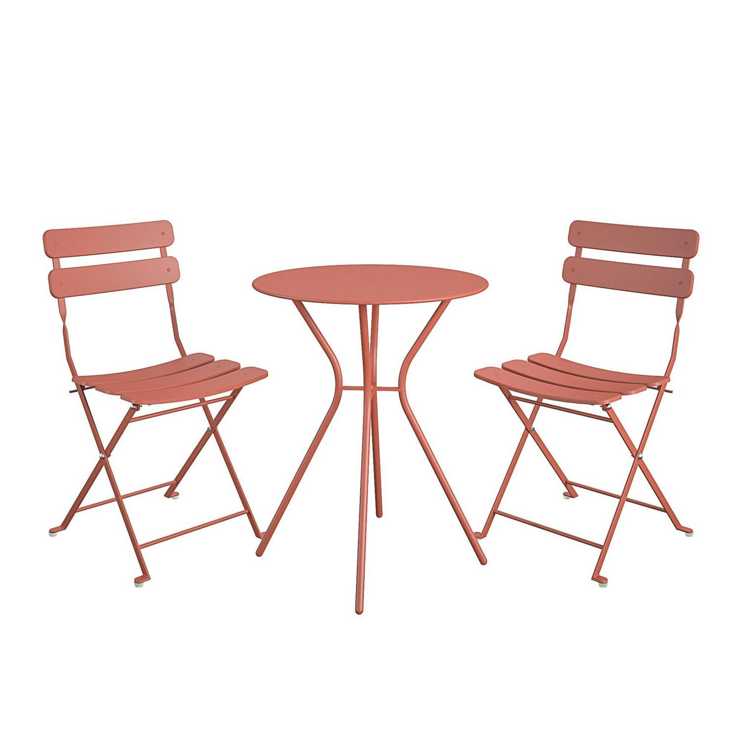 Queer Eye Brennan 3 Piece Bistro Set with 2 Folding Chairs, Sunbaked Orange