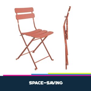 The Queer Eye Brennan Bistro Set is striking in a vibrant shade of Sunbaked Orange, inviting elements of flirty charm and warmth into your space. In this delightful shade of Sunbaked Orange, your guests will be left shook at the sight of your new sanctuary and dining look. Both chairs can be folded or nested anywhere for easy storage. No-prep and easy setup for spontaneous gatherings as you celebrate the season in style!