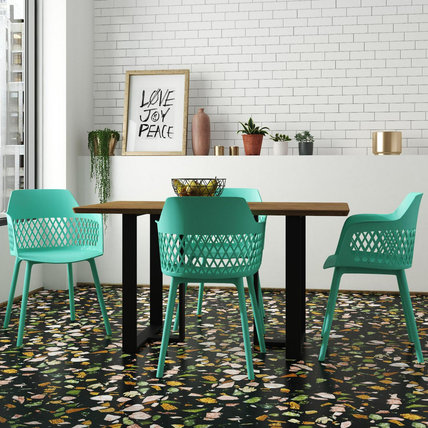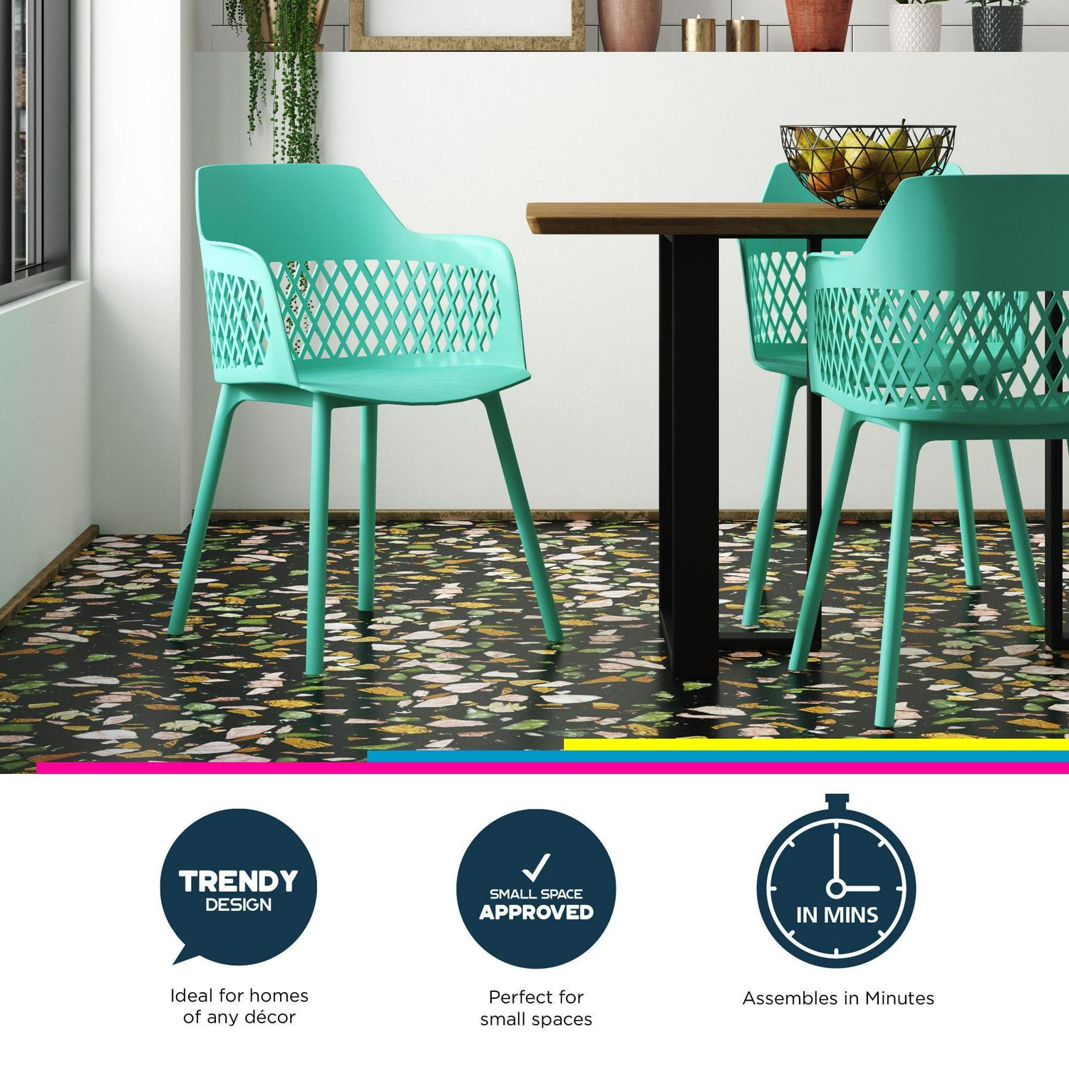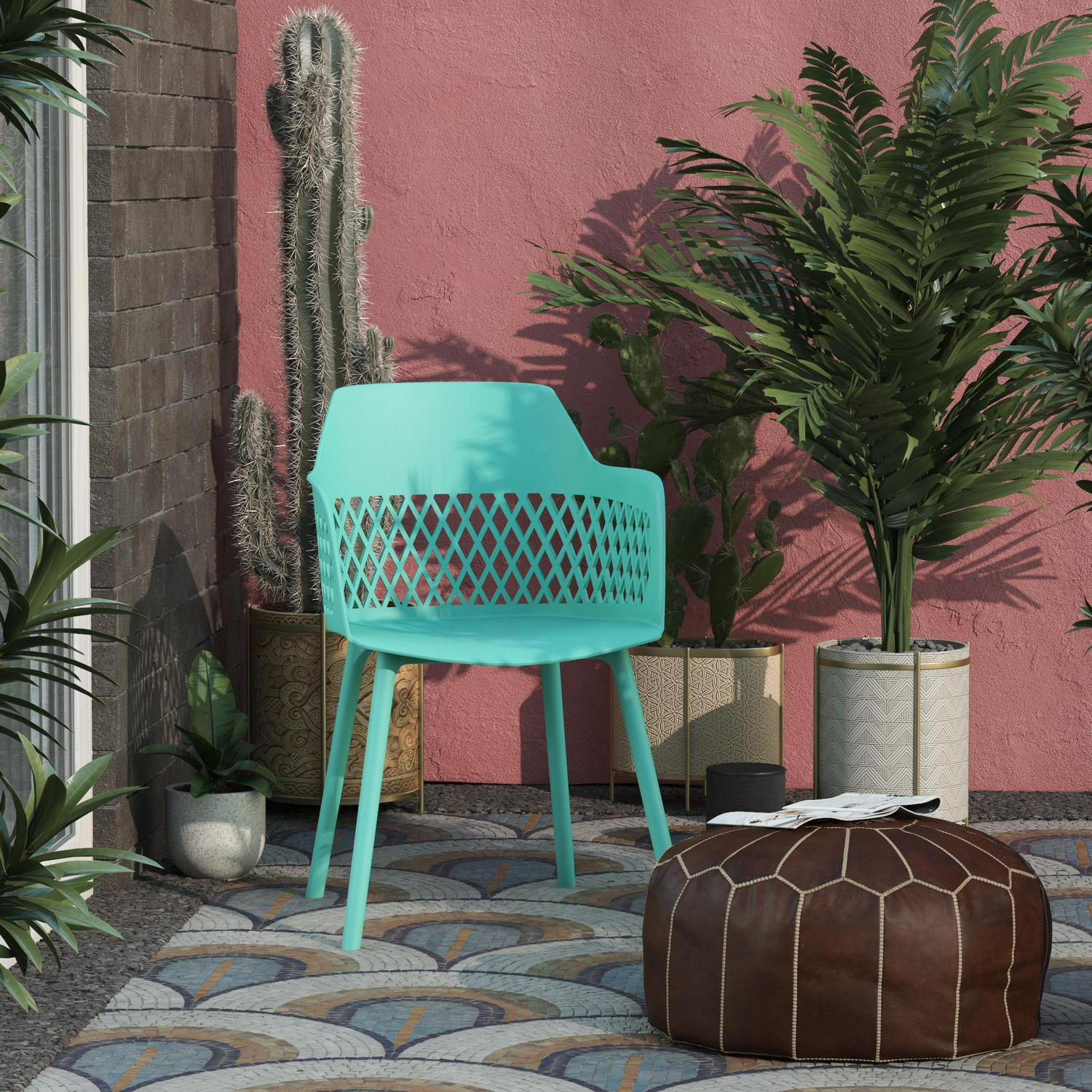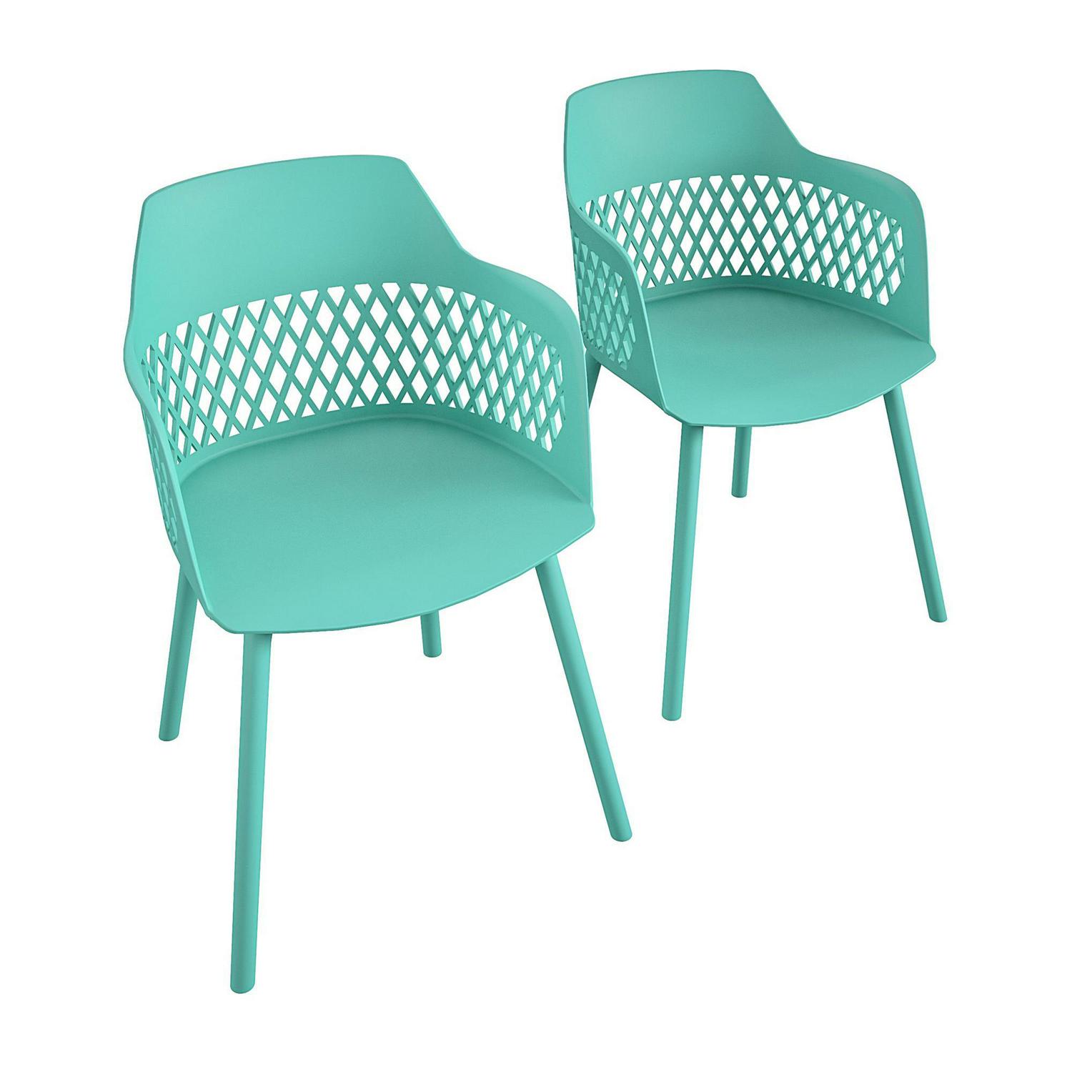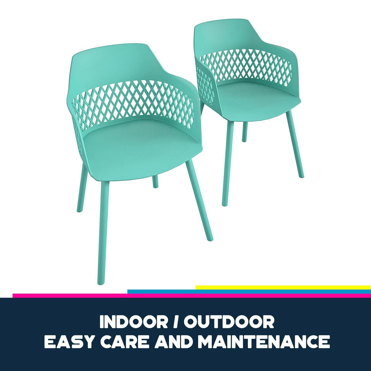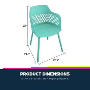 Queer Eye Caden Resin Geo Dining Chair, Indoor/Outdoor, 2-Pack, Surf Blue