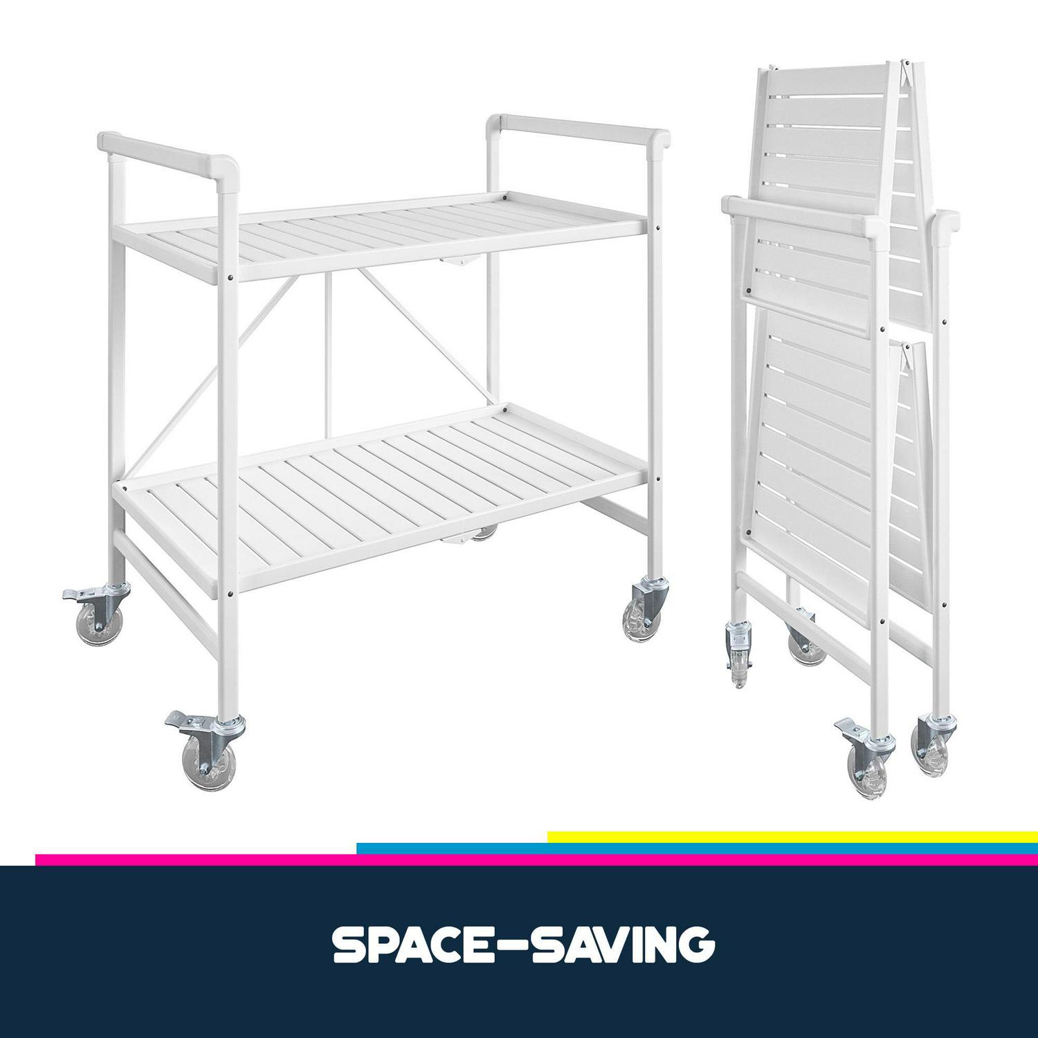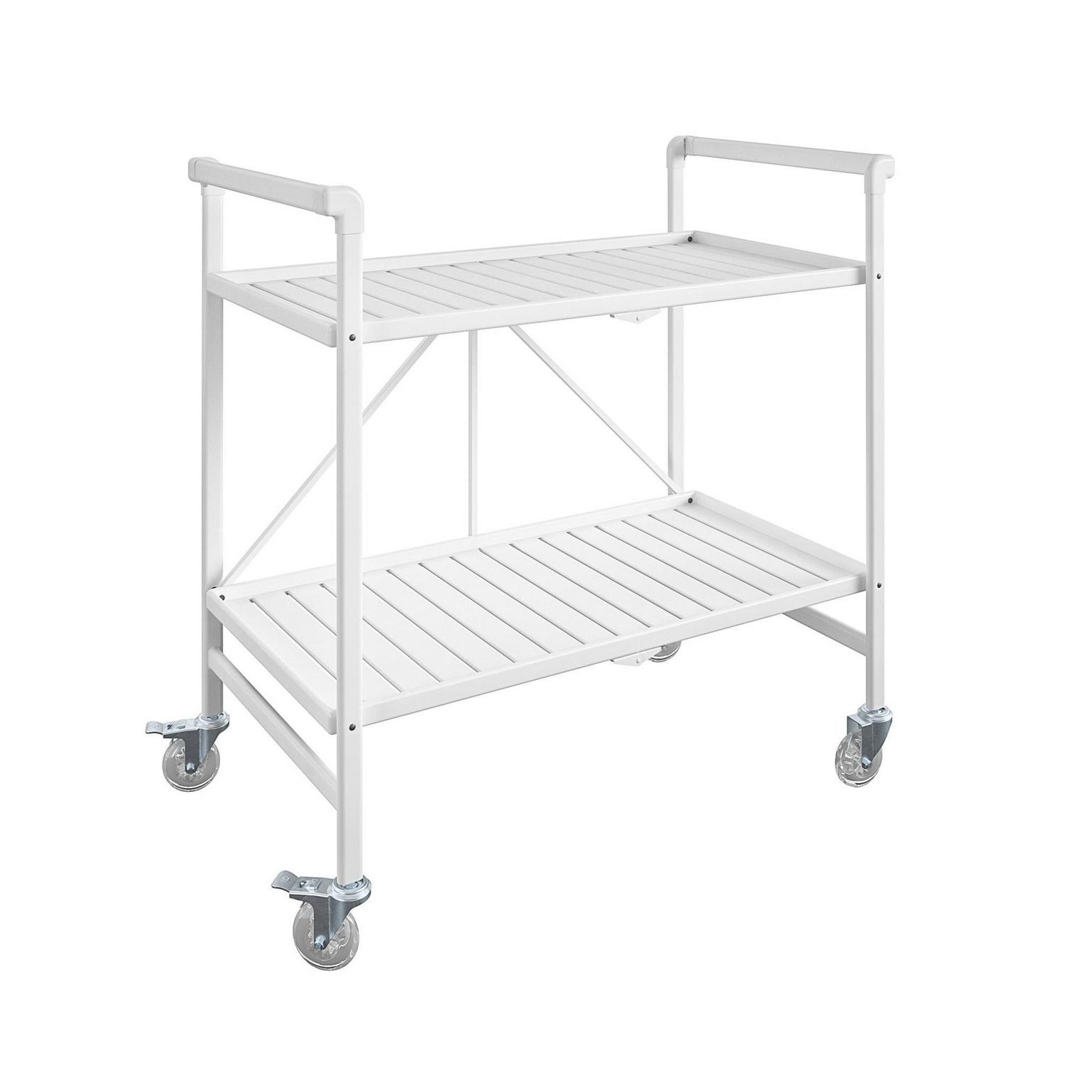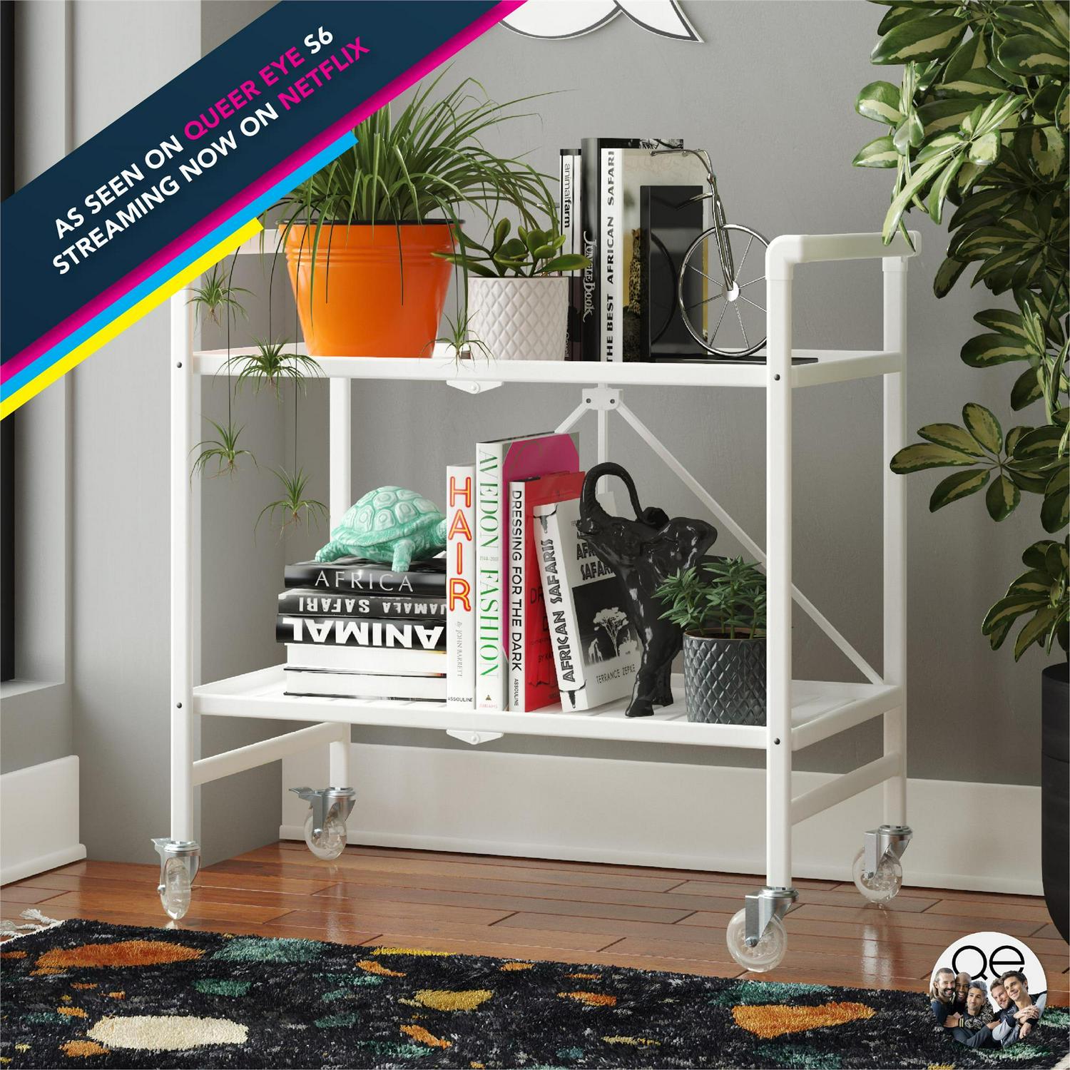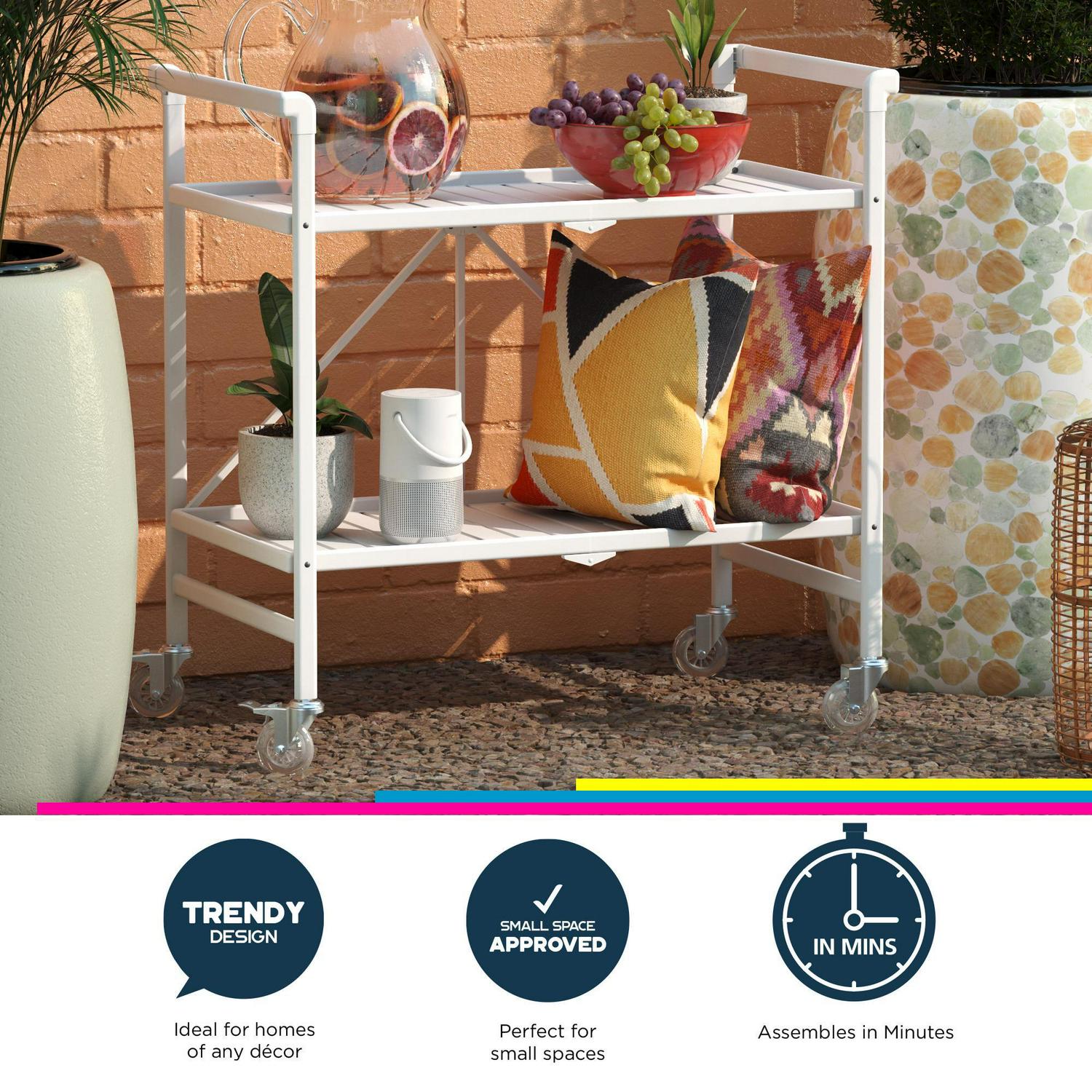 Queer Eye Cleo Slatted Folding Serving Cart, Indoor/Outdoor, Classic White
