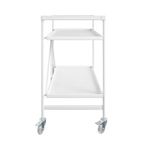 The Cleo Slatted Serving Cart is the perfect kitchen addition, beverage, or snack server to showcase your craft cocktails or buzzworthy appetizers. This Classic White beauty features a transitional style and clean lines, a functional accent piece to compliment all the eye candy displayed throughout your abode. If space is tight, simply fold in half and store under a bed or in a closet until the next shindig!