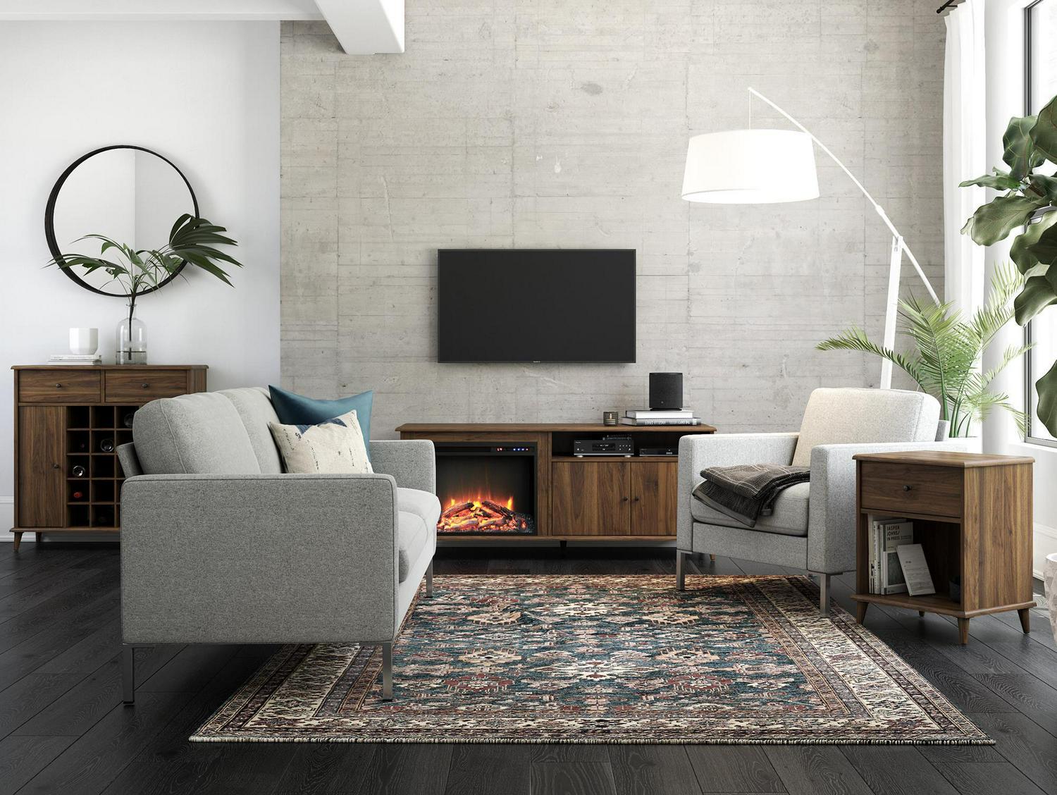 Give your bedroom oasis a fierce overhaul with the mid-century modern Queer Eye Farnsworth Nightstand. When you re getting ready for a little beauty sleep, the nightstand is perfect for keeping all of your essentials close. With both open and concealed storage, you have all the storage options you could need. With less clutter comes more zen so you can sleep like a king (or queen)! The back panel is finished so you can also use the nightstand as an adorable end table. The classic walnut woodgrain finish on the laminated MDF and particleboard will look gorgeous without the high price tag! Pair the nightstand with the rest of the Farnsworth collection for a coordinated and fierce look for your entire room!