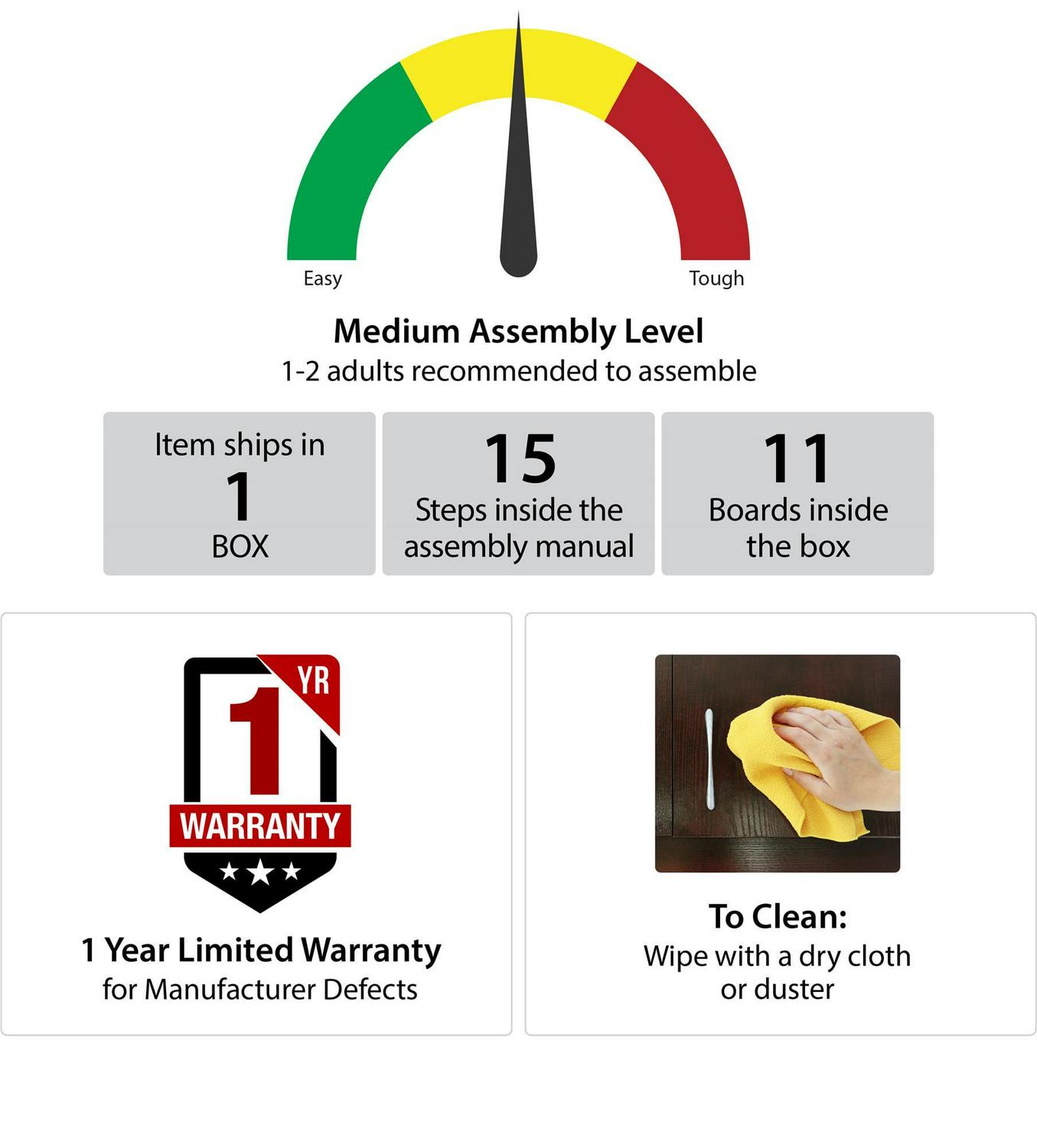- Material: Laminate, Particleboard, Medium Density Fiberboard