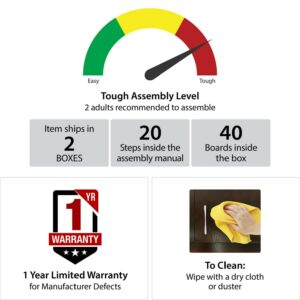 – The dresser ships flat to your door in 2 boxes and 2 adults are recommended to assemble. The top surface can hold 75 lbs. Each of the smaller drawers can hold 25 lbs while the larger drawers can hold 35 lbs each. Assembled dimensions: 31.8″H x 51.06″W x 19.69″D