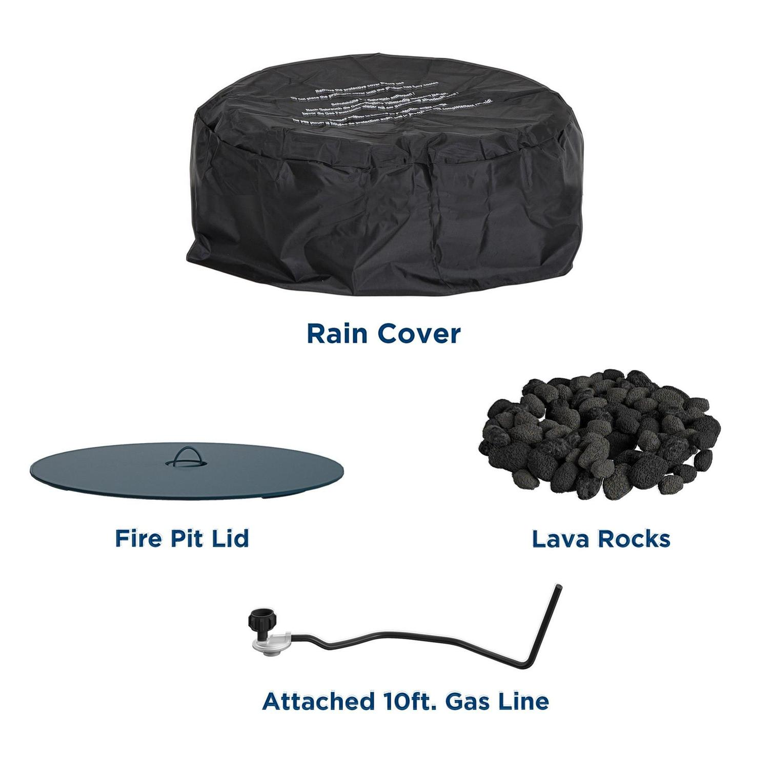 - Includes a rain cover and fire pit lid to protect the fire pit from drizzly weather
