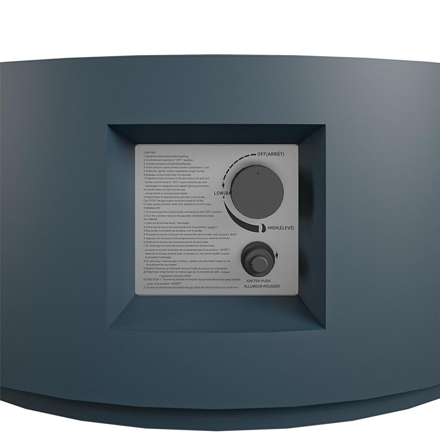 Summer can last all year long with the Queer Eye Finley Fire Pit. Features modern, clean lines with dark gray lava rocks which translate into an artful piece a perfect focal point for your outdoor space. The all-steel construction guarantees durability and longevity as you gather and make lasting memories year-round. With a 10 gas line, you can easily rearrange and display this stunning piece for maximum coziness. The rain cover is ideal for protecting it from the elements, keeping the sleek, indigo blue surface easy to clean when the fire is out and friends bid farewell.