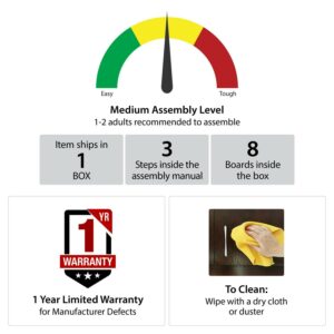 – The bookcase ships flat to your door and 2 adults are recommended to assemble. Each shelf can hold up to 25 lbs. Assembled dimensions: 46.06″H x 31.3″W x 14.5″D