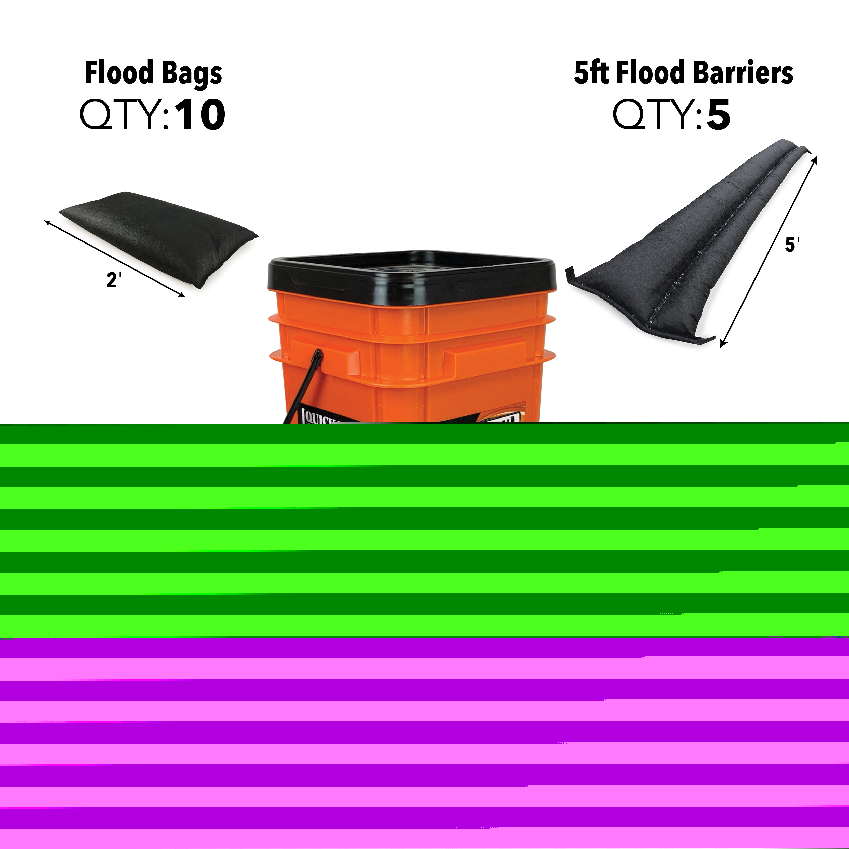 Quick Dam Grab and Go Flood Kit includes (5)- 5ft Flood Barriers (10) Flood Bags in Bucket