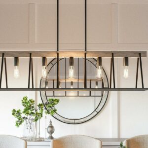With open framework and weathered styling, the Brockton comes farmhouse-approved. The grey ash finish of the thin metal body pairs perfectly with the whitewash finish of the faux wood accents. Vintage filament bulbs provide soft, ambient light in this rustic charmer.