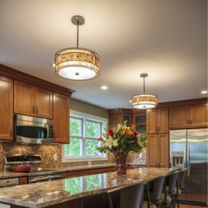 This mica piece is an addition to the Quoizel Naturals collection and features a mosaic tile stripe, which appears to be floating around a taupe mica shade. The tiles have a coppery shimmer for an added touch of elegance. It provides a warm and inviting accent for most any home.