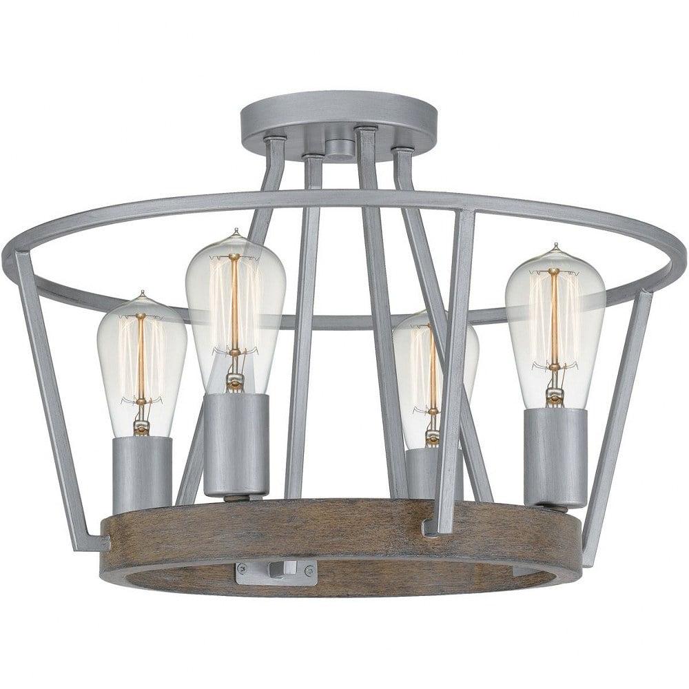 Quoizel Lighting-BRT1717BSR-Collection: Brockton, Material: Steel, Finish Color: Brushed Silver, Width: 17.5″, Height: 12.25″, Length: 17.5″, Lamping Type: Incandescent, Number Of Bulbs: 4, Wattage: 100 Watts, Dimmable: Yes, Moisture Rating: Damp Rated, Desc: With open framework and weathered styling, The Brockton comes farmhouse-approved. Finished in Brushed Silver or Grey Ash, The thin metal body pairs perfectly with the whitewash finish of the faux wood accents. Vintage filament bulbs provide soft, Ambient light in this rustic charmer. Crafted from steel and finished in Brushed Silver. Farmhouse style design with an open, Drum-shaped silhouette and painted wood detailing. Exposed bulbs allow for maximum light flow. Capable of being dimmed when used with incandescent or dimmable LED bulbs. Product Warranty: Product Warranty: Indoor Lighting Fixtures-Electrical Components [1 Year], Integrated LED (LED Bulbs Excluded)[5 Years], Finish[1 Year]; Outdoor Lighting Fixtures-Electrical Wiring & Sockets [1 Year], Integrated LED (LED Bulbs Excluded)[5 Years], “Armour” Finish[5 Years], Finish[2 Years]. Warranty: Indoor Lighting Fixtures-Electrical Components [1 Year], Integrated LED (LED Bulbs Excluded)[5 Years], Finish[1 Year]; Outdoor Lighting Fixtures-Electrical Wiring & Sockets [1 Year], Integrated LED (LED Bulbs Excluded)[5 Years], “Armour” Finish[5 Years], Finish[2 Years]. / Room Suggestion: Bathroom/Closet/Entry/Foyer. / Assembly Required: Yes. / Canopy Included: Yes. / Cord Length: 96.00. / Canopy Diameter: 5.00 X 5.00.. Assembly Required: Yes. / Canopy Included: Yes. / Canopy Diameter: 5. / Chain Length: 4.00. / Bulb Shape: A19. / Dimable: Yes.. ,-Brockton – Four Light Semi-Flush Mount – 12.25 Inches high-Brushed Silver Finish