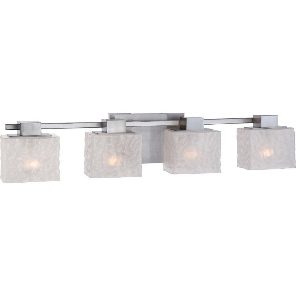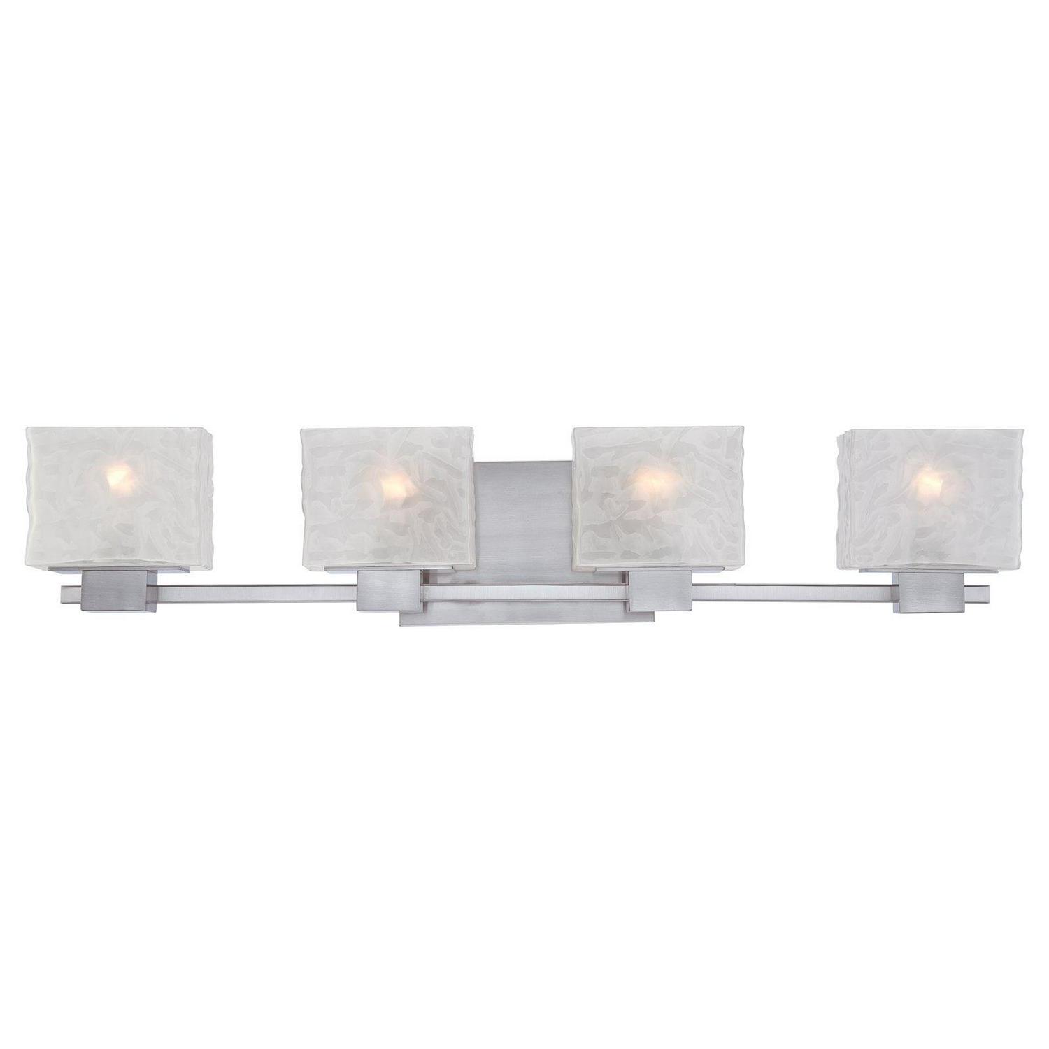 Bathroom – Mounting Direction: Up/Down / Cord Length: 72.00 . Assembly Required: Yes / Back Plate Height: 5.75 / Back Plate Width: 9.00 / Bulb Shape: A19 / Dimable: Yes / Shade Included: Yes . ,-Melody – 4 Light Bath Bar – 6.5 Inches high-Melody Bath Light, Bath Light, , CLEAR-GLASS, LIGHTING, LIGHTING-FIXTURE, SILVER, WHITE, No Bulb Exposure, GEOMETRIC shape, LINEAR-FIXTURE-SHAPE, wall sconce, METAL-LOOK, wall mounted, vanity light, bathroom light, over sink light, bath bar, multi light wall sconce, vanity strip light, sink lighting, square shape bath vanity light, rectangular shape bath vanity light, vanity light, vanity lighting, bathroom lighting, armed lighting, armed light, armed vanity lighting, armed vanity light, armed vanity sconce,contemporary bath vanity light, modern bath vanity light, 4 light vanity, 4 light bath light, shadded bath vanity light, armed lighting, armed light, armed vanity lighting, armed vanity light, armed vanity sconce,brushed nickel finish vanity light, white textured glass shade vanity light,-MLD8604BN